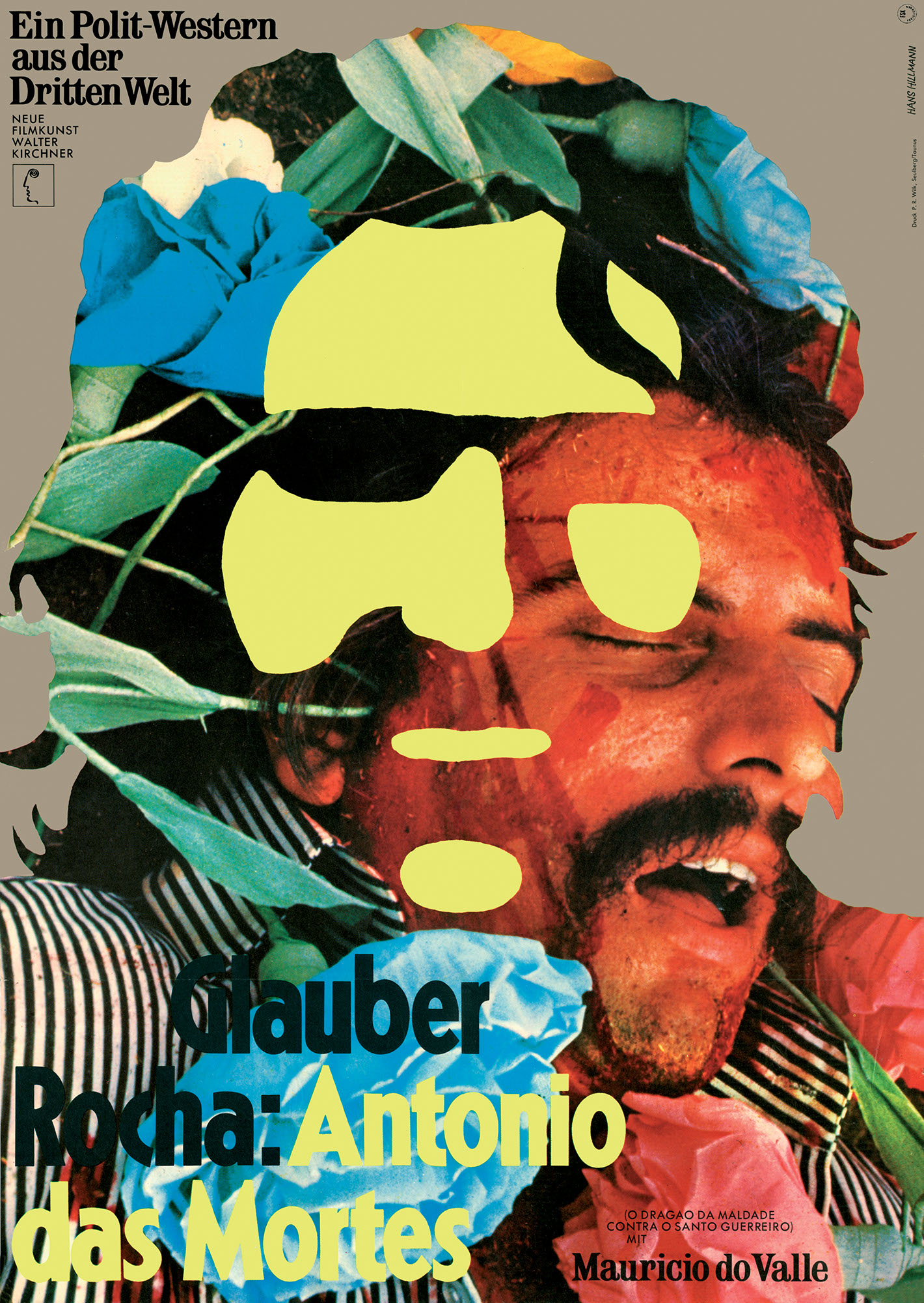 I have drawn Antonio’s head on a transparency. On the transparency I painted a yellow face and a grey shadow around the head — nothing else. It was not very big, and so I had the possibility to move stills from the film underneath it. And where the head repeated itself, so to speak, in the same size, was the living and the dead. You can see that he bleeds and then falls into the grass, which was especially appropriate, of course, because it creates a kind of wreath. (Hans Hillmann)