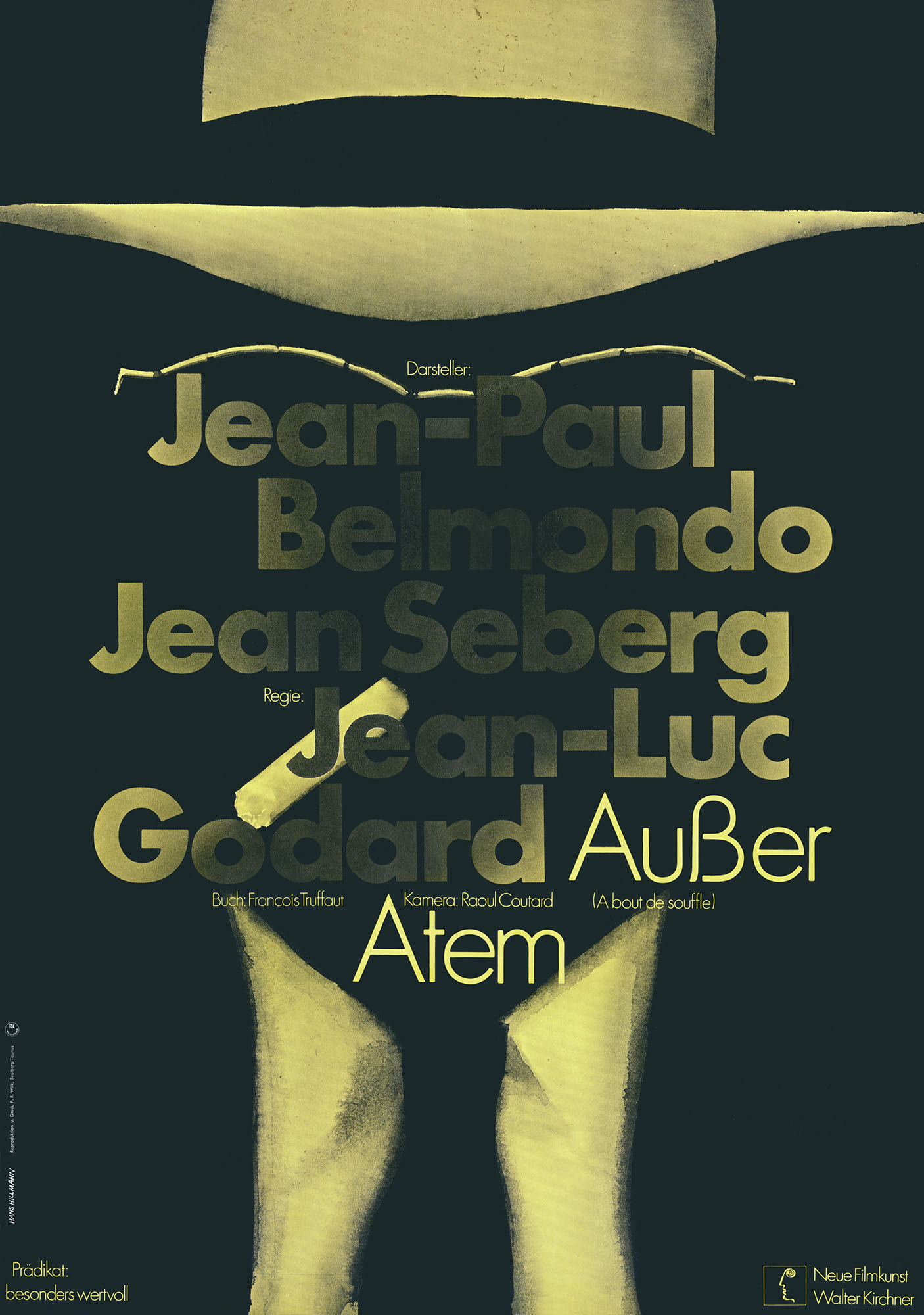 Außer AtemJahr: 1968Medium: PlakatMaße: 59,4x84,1 cm (DIN A1)Technik: OffsetdruckAuftraggeber: Neue Filmkunst Walter KirchnerOrt: GöttingenKeine Beschreibung