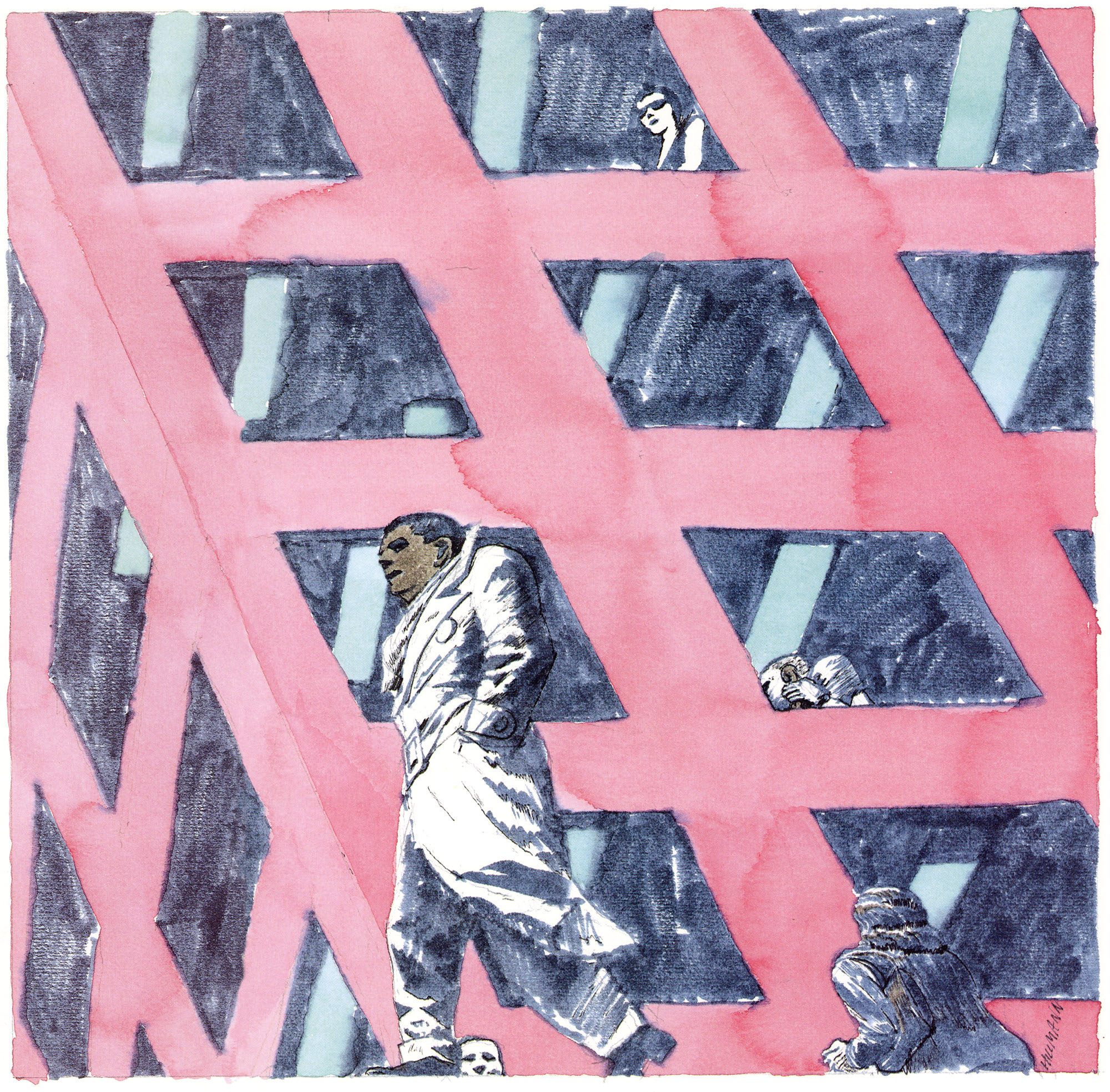 Charakterbilder – Der FlaneurJahr: 1987Medium: MagazinillustrationTechnik: AquarellzeichnungAuftraggeber: Frankfurter Allgemeine MagazinOrt: Frankfurt am MainAus der Serie »Charakterbilder«. Abgedruckt im »FAZ Magazin«.