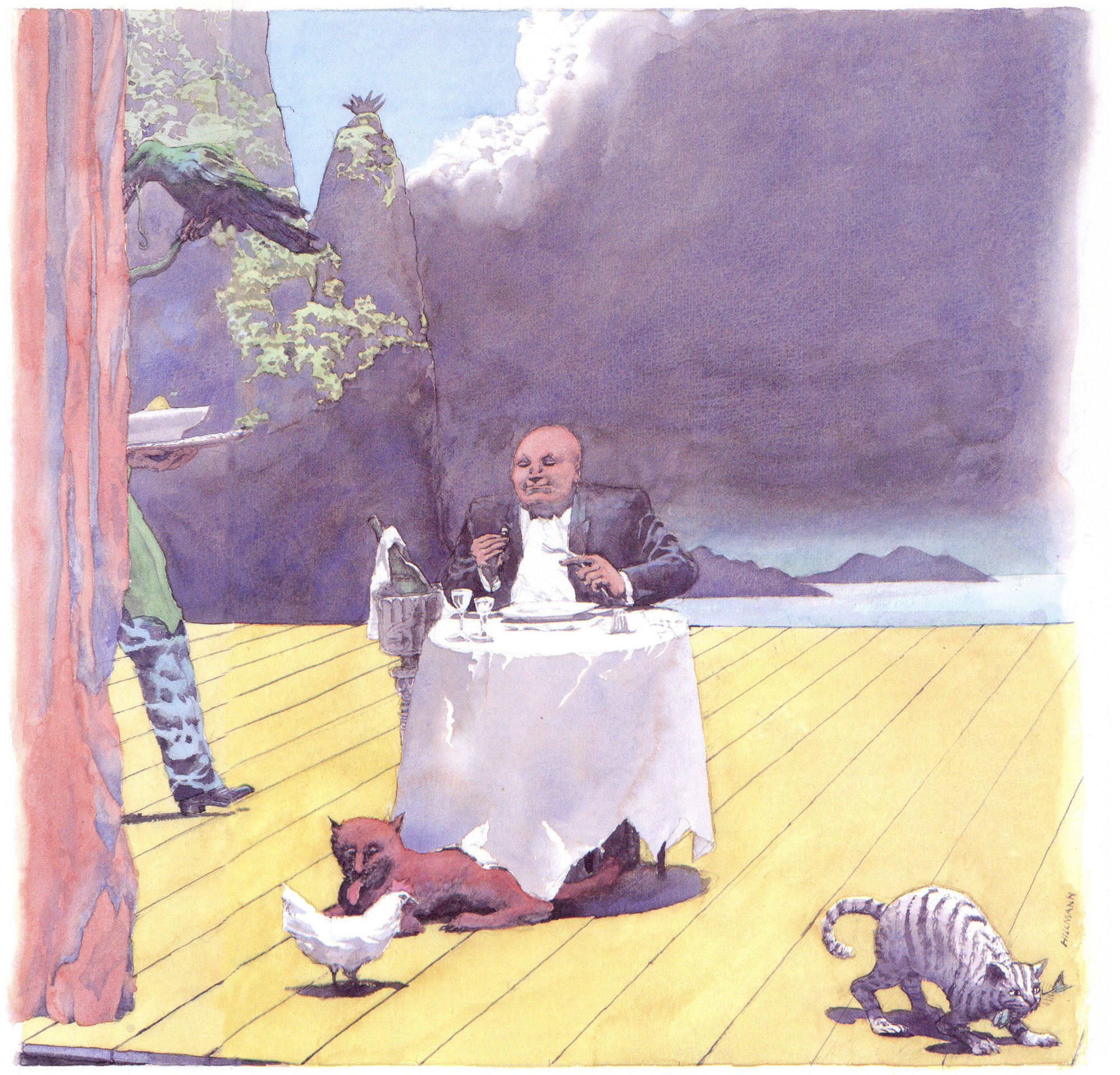 Charakterbilder – Der GenießerJahr: 1987Medium: MagazinillustrationTechnik: AquarellzeichnungAuftraggeber: Frankfurter Allgemeine MagazinOrt: Frankfurt am MainAus der Serie »Charakterbilder«. Abgedruckt im »FAZ Magazin«.