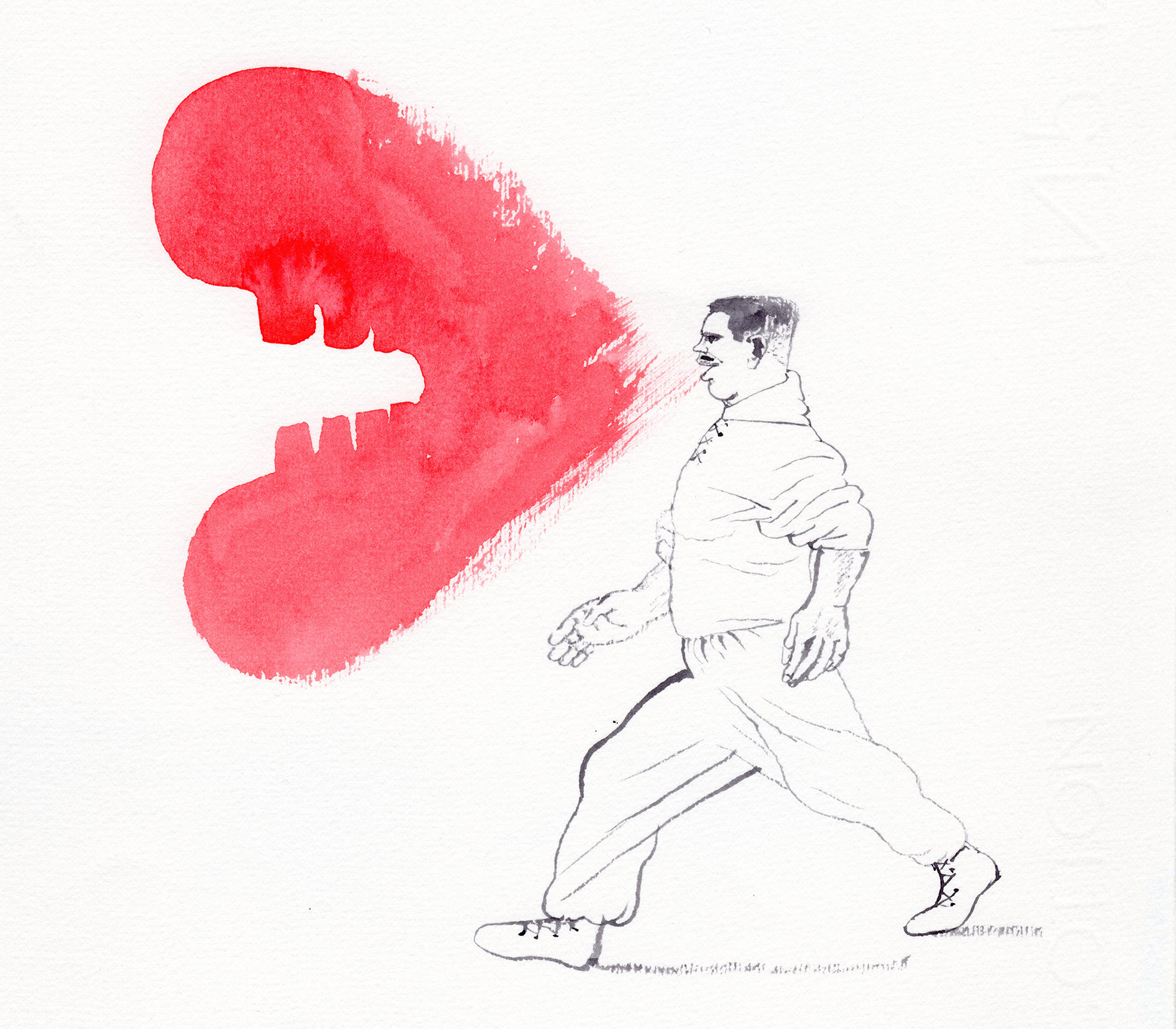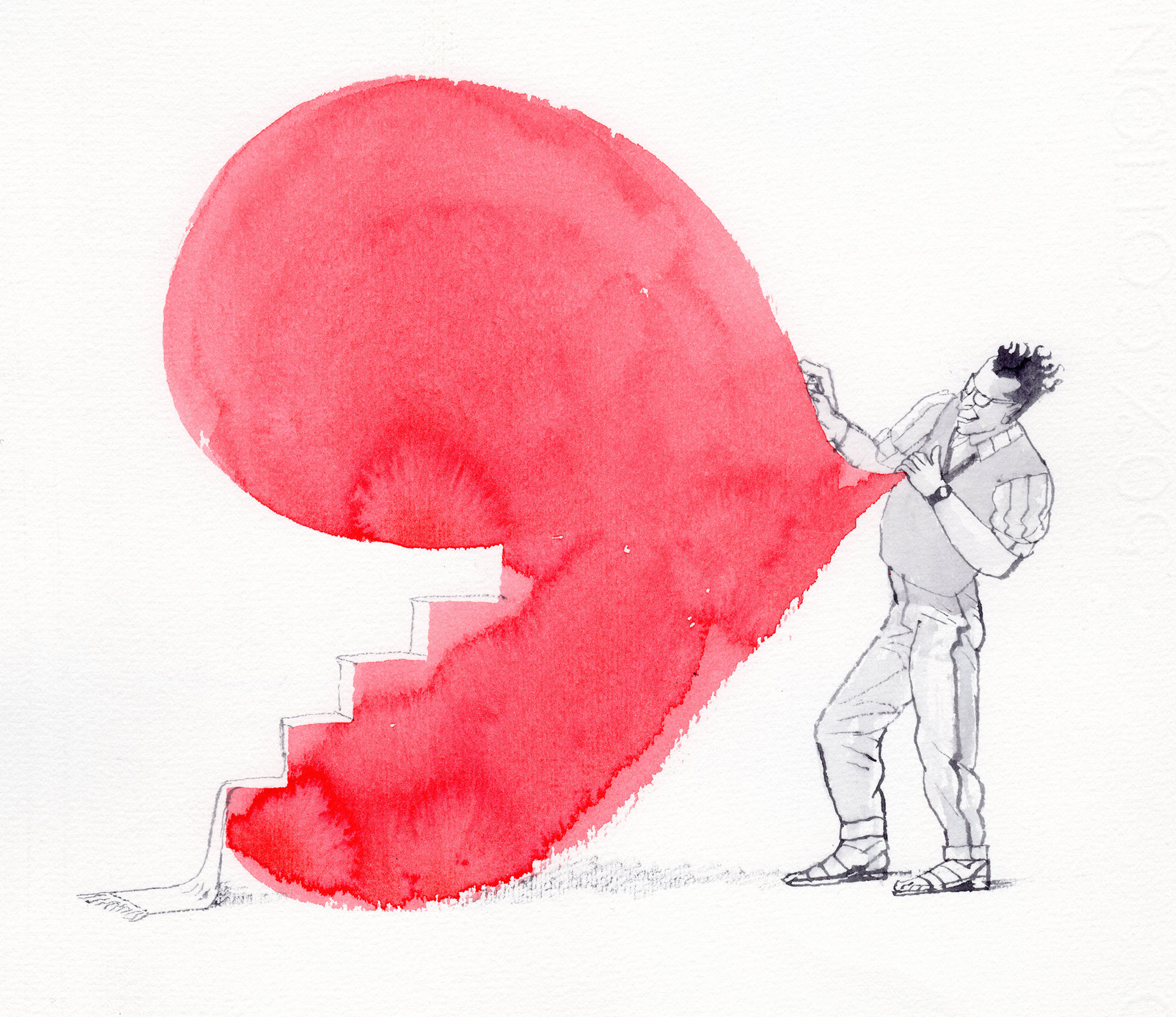 Charakterbilder – Der VerführerJahr: 1987Medium: MagazinillustrationMaße: 23x16,5 cmTechnik: AquarellzeichnungAuftraggeber: Frankfurter Allgemeine MagazinOrt: Frankfurt am MainAus der Serie »Charakterbilder«. Abgedruckt im »FAZ Magazin«.