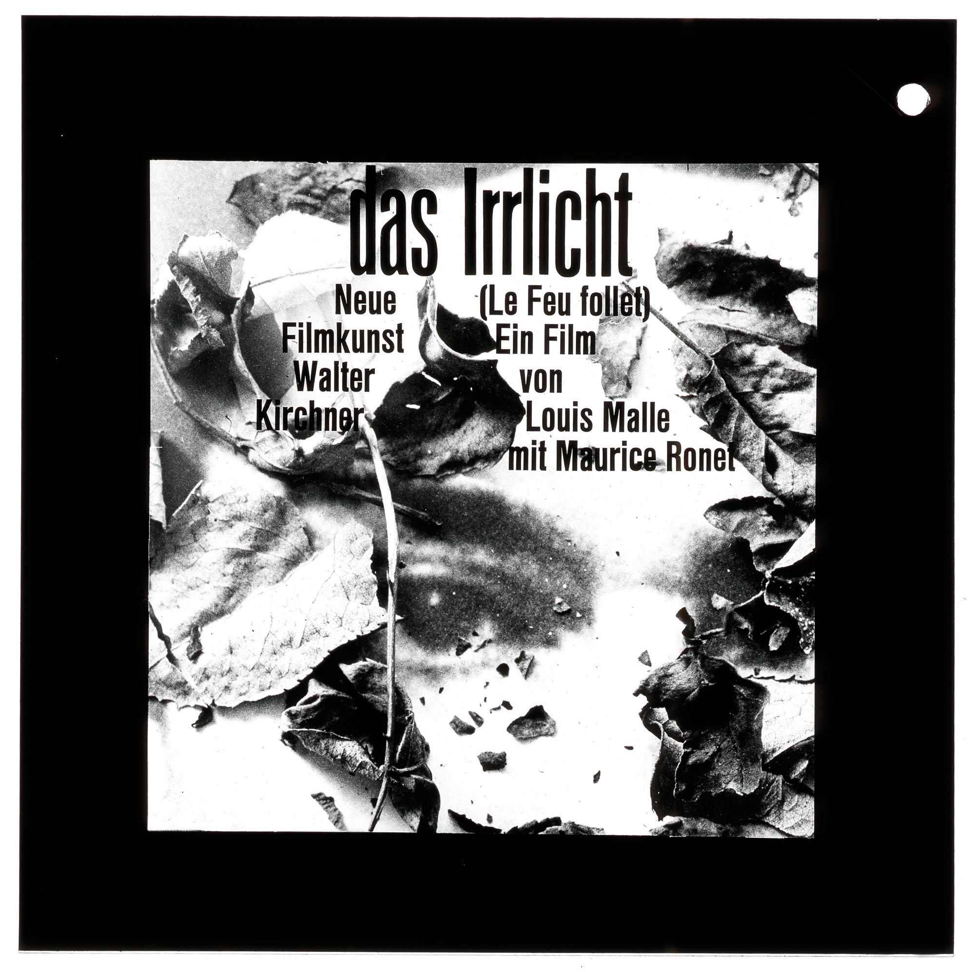 Das Irrlicht (Werbedia)Jahr: 1966Medium: WerbediaMaße: 8x8 cmAuftraggeber: Neue Filmkunst Walter KirchnerOrt: GöttingenKeine Beschreibung