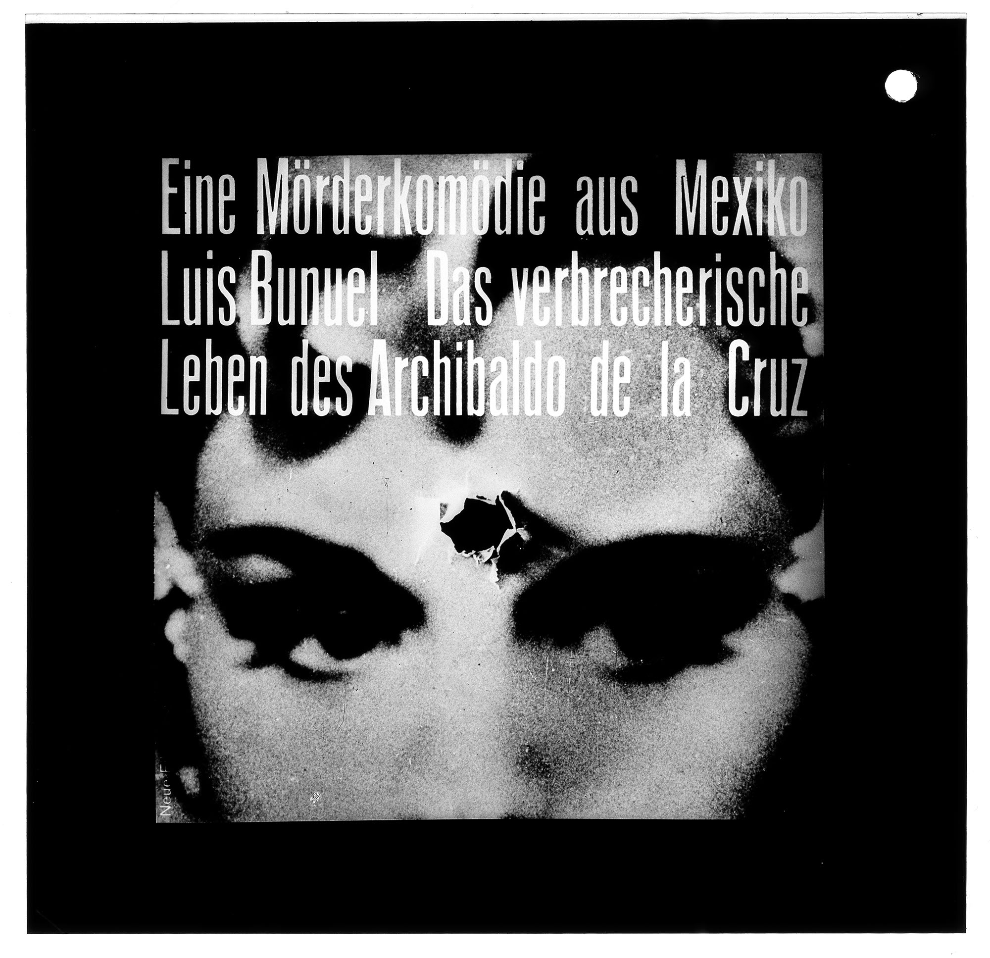 Das verbrecherische Leben des Archibaldo de la Cruz (Werbedia)Jahr: 1961Medium: WerbediaMaße: 8x8 cmAuftraggeber: Neue Filmkunst Walter KirchnerOrt: GöttingenKeine Beschreibung