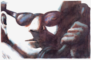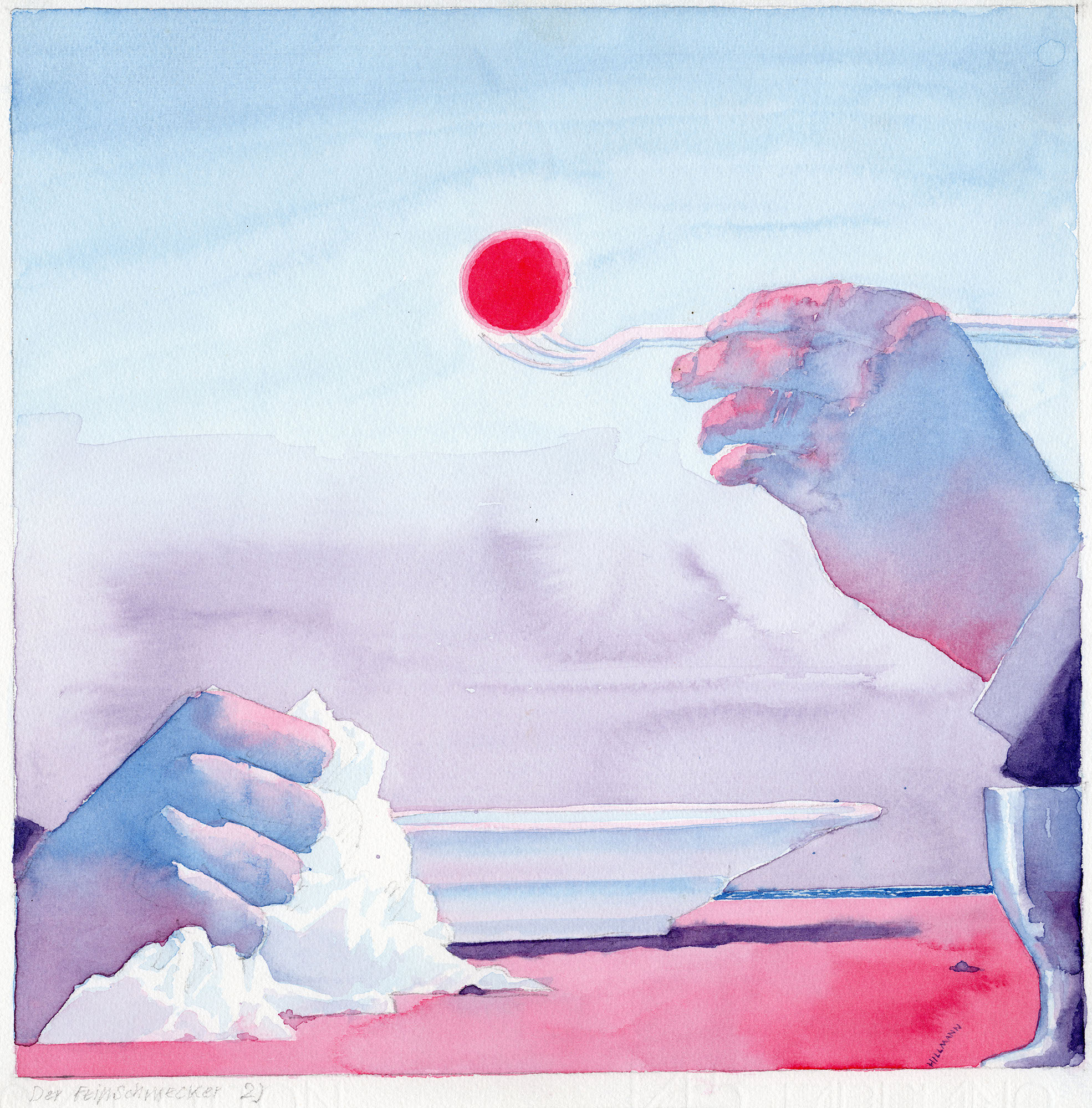 Charakterbilder – Der FeinschmeckerJahr: 1990Medium: MagazinillustrationMaße: 28x28 cmTechnik: AquarellzeichnungAuftraggeber: Frankfurter Allgemeine MagazinOrt: Frankfurt am MainAbgedruckt im »FAZ Magazin«.