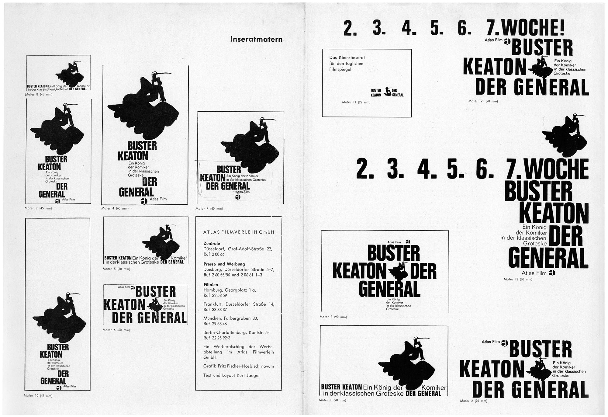 Der General (Werberatschlag)Jahr: 1962Medium: BroschüreMaße: 21x30,5 cmTechnik: BuchdruckAuftraggeber: Atlas FilmOrt: DuisburgKeine Beschreibung
