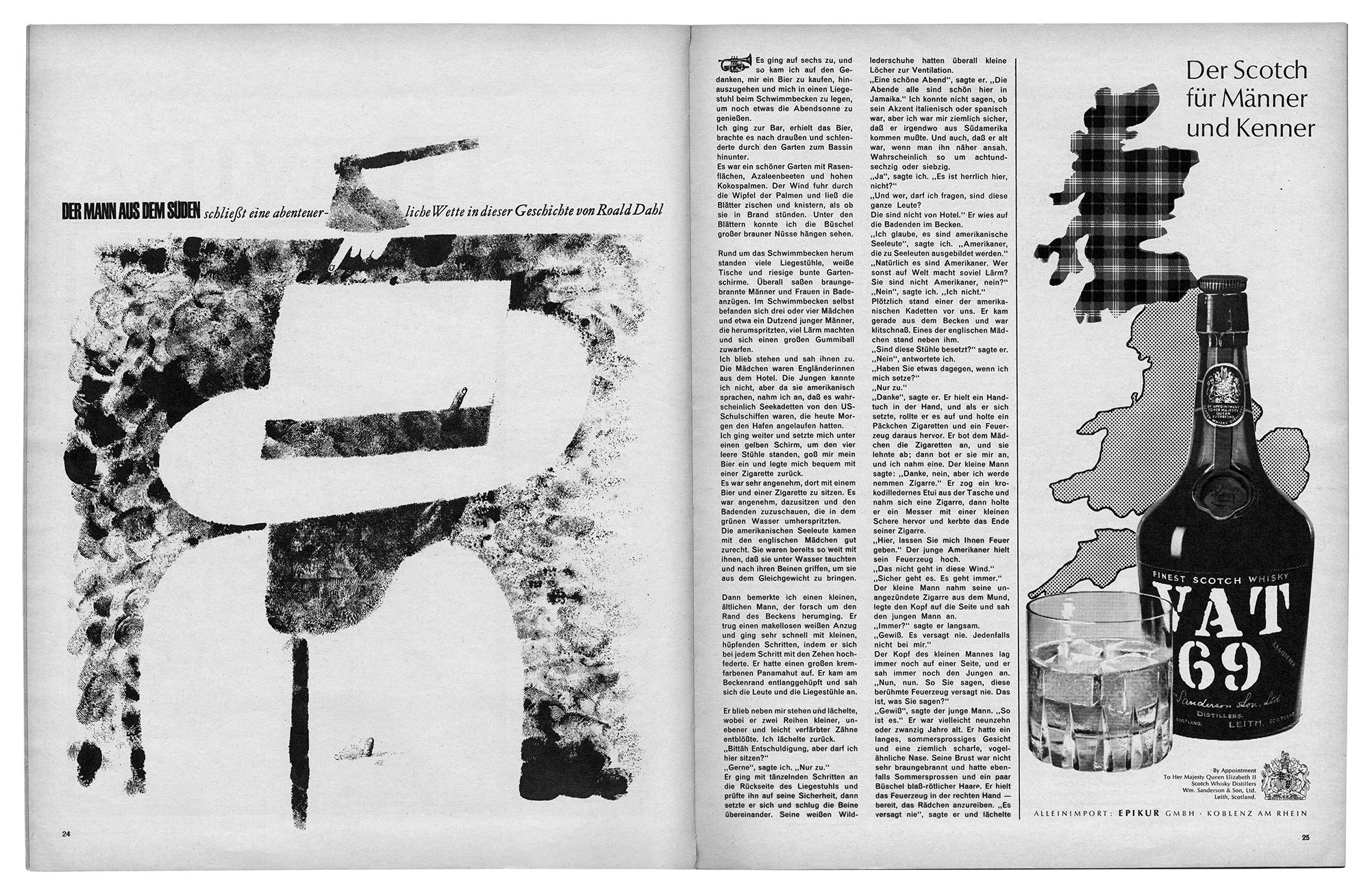 Der Mann aus dem SüdenJahr: 1963Medium: MagazinillustrationMaße: 52x33,5 cmTechnik: TiefdruckAuftraggeber: TwenOrt: KölnAus twen Nr. 04-1963. Art Director: Willy Fleckhaus.