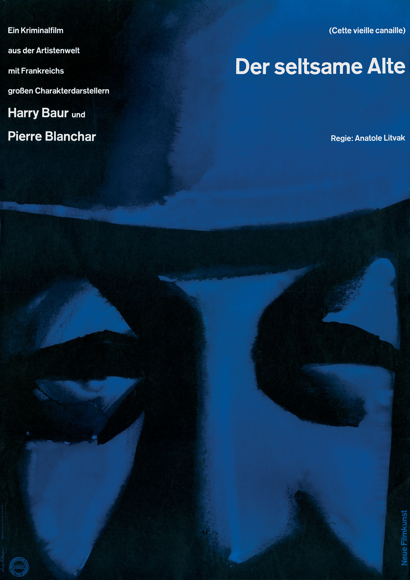 Der seltsame AlteJahr: 1959Medium: PlakatMaße: 59,4x84,1 cm (DIN A1)Technik: OffsetdruckAuftraggeber: Neue Filmkunst Walter KirchnerOrt: GöttingenKeine Beschreibung