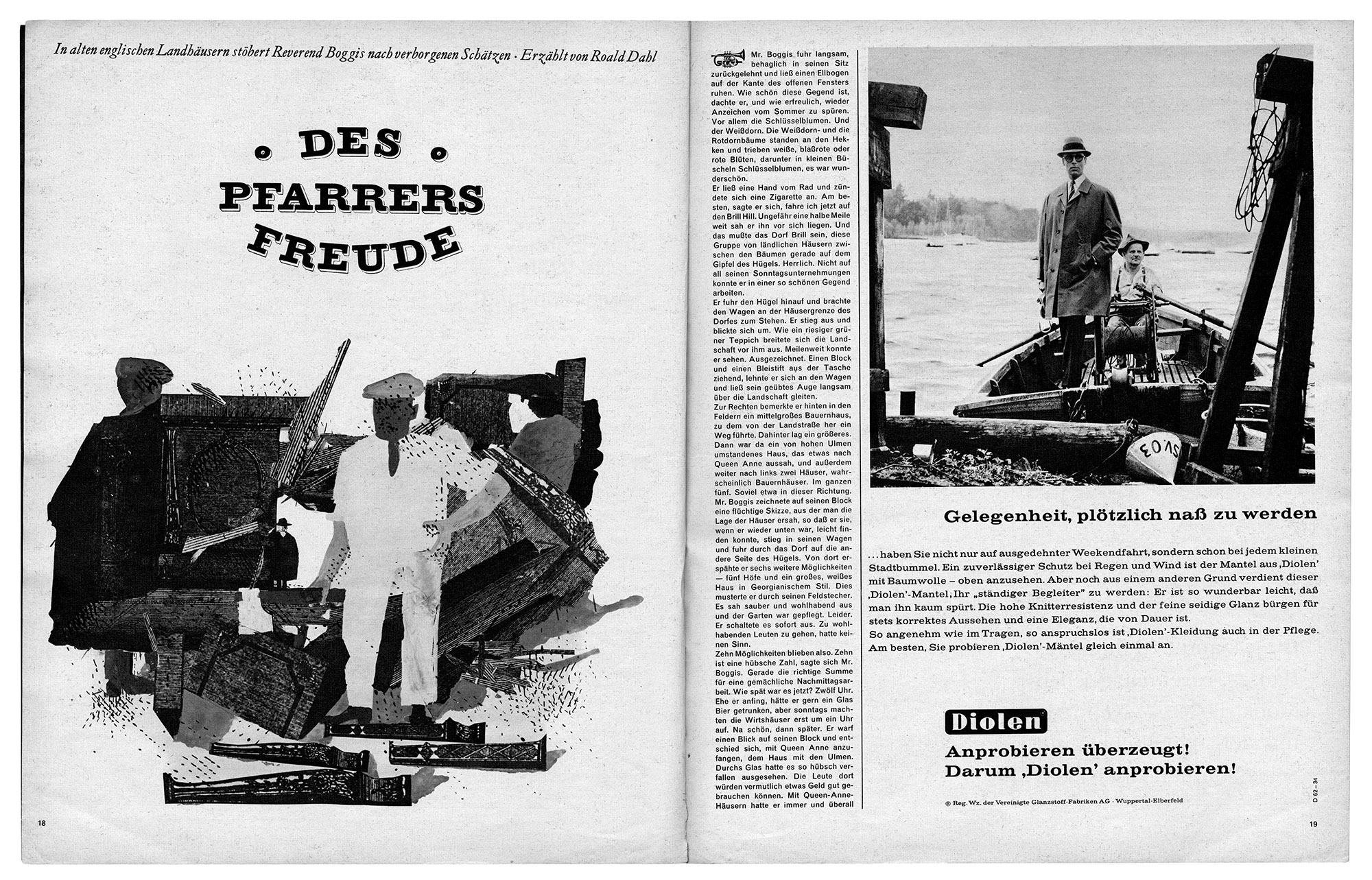 Des Pfarrers FreudeJahr: 1962Medium: MagazinillustrationMaße: 52x33,5 cmTechnik: TiefdruckAuftraggeber: TwenOrt: KölnAus twen Nr. 04-1962. Art Director: Willy Fleckhaus.