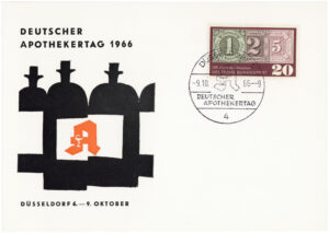 Das identische Motiv wurde auch für den Deutschen Apothekertag 1962 und 1966 verwendet.