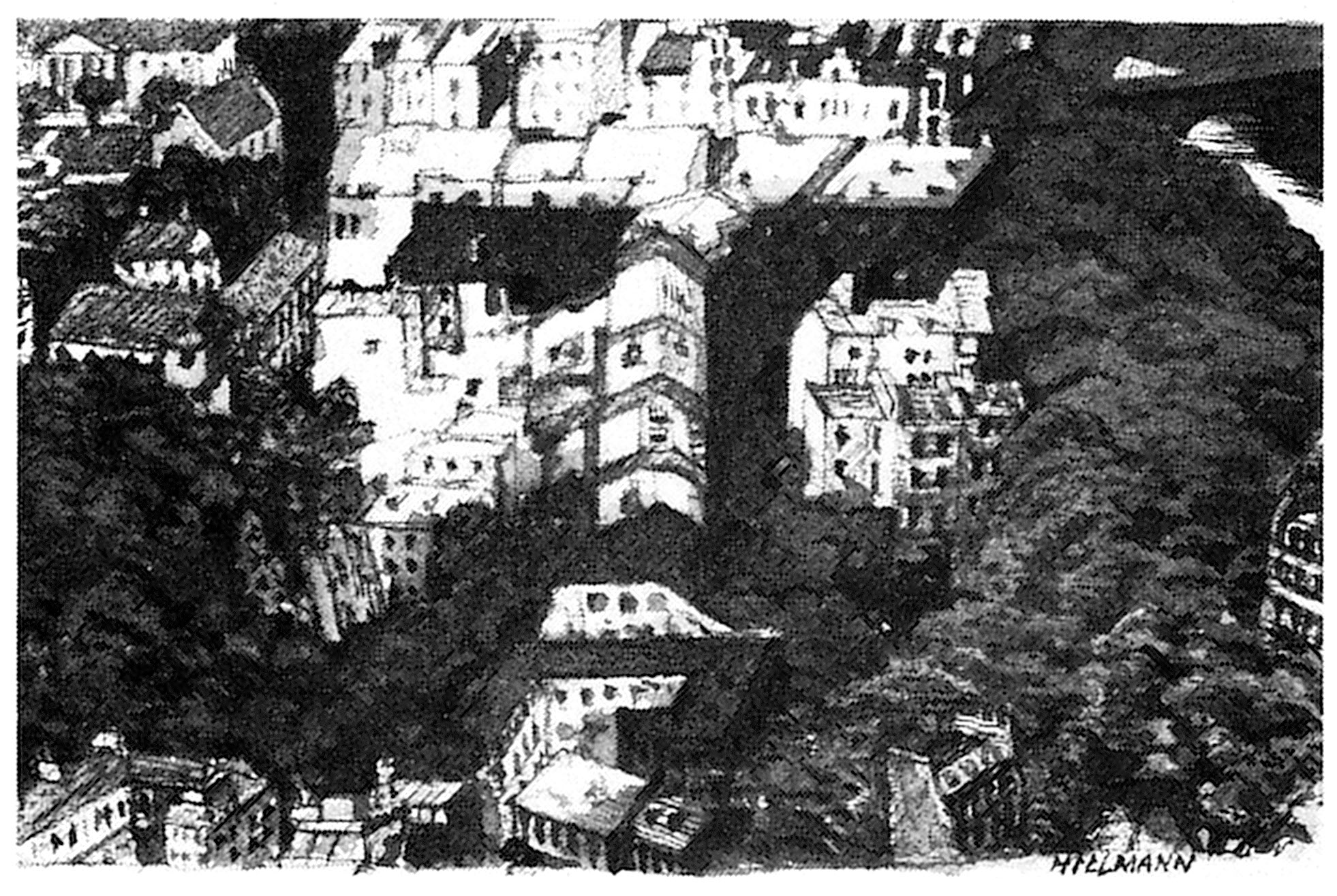 Die neuen Geheimnisse von ParisJahr: 1980Medium: MagazinillustrationTechnik: OffsetdruckAuftraggeber: TransAtlantik VerlagOrt: ParisAbgedruckt in »TransAtlantik«, Nr. 10/1980.