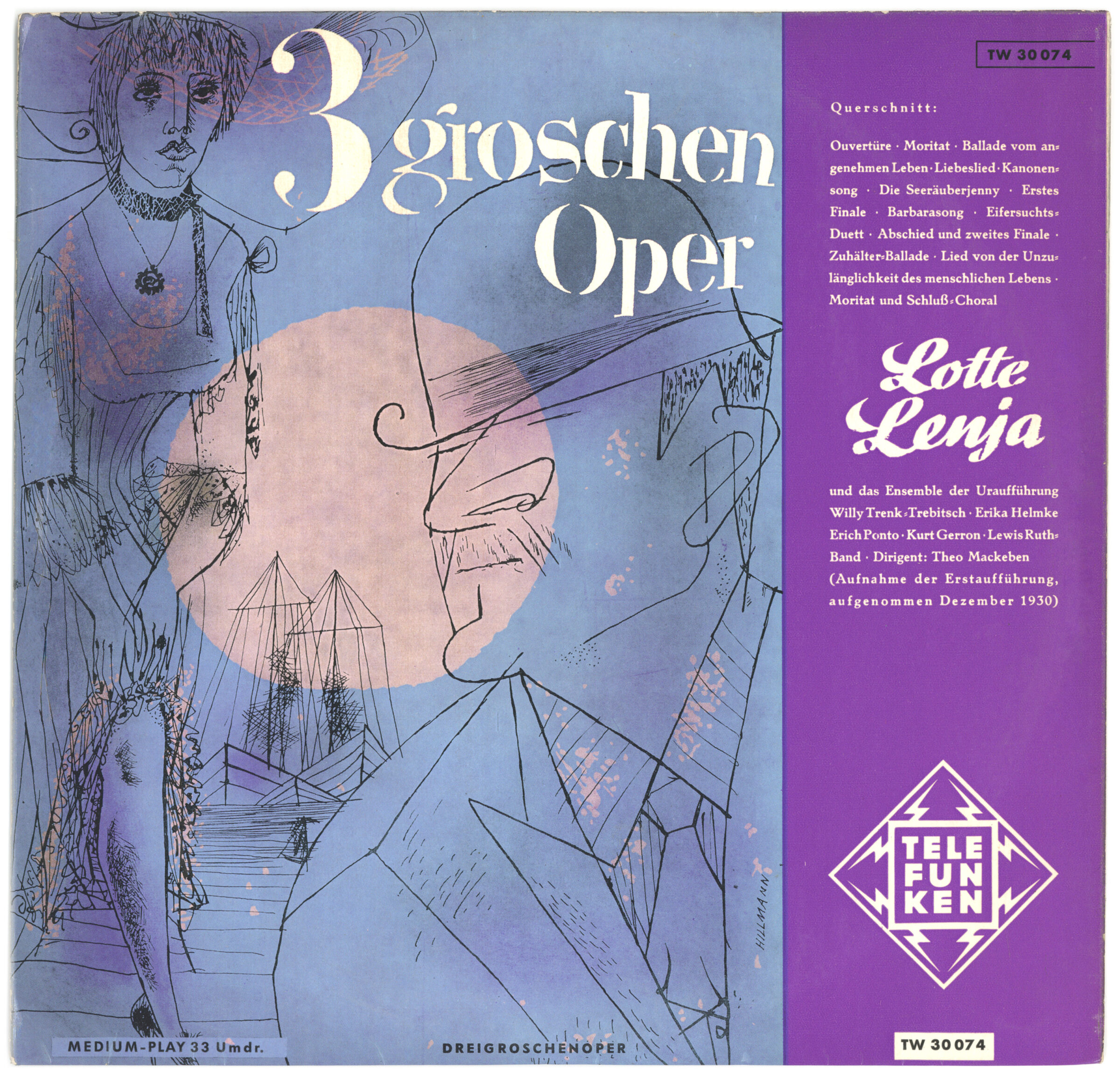 Dreigroschenoper (Telefunken)Jahr: 1955Medium: SchallplattencoverMaße: 27 x 26 cmTechnik: OffsetdruckAuftraggeber: TelefunkenKeine Beschreibung