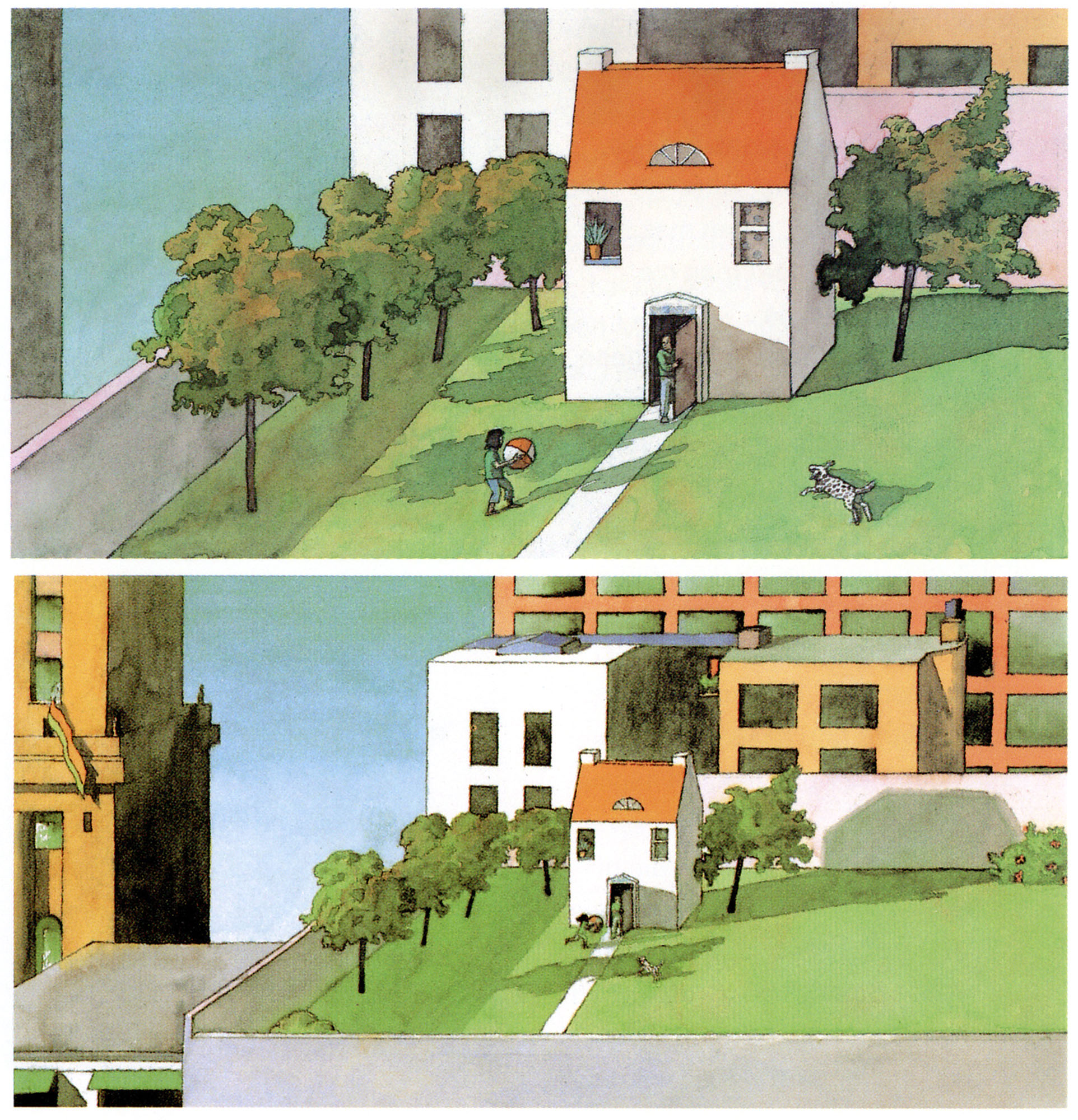 Ein Häuschen im Grünen (Illustration 02)Jahr: 1988Medium: BuchillustrationTechnik: AquarellzeichnungAuftraggeber: Ravensburger VerlagOrt: Frankfurt am MainKeine Beschreibung