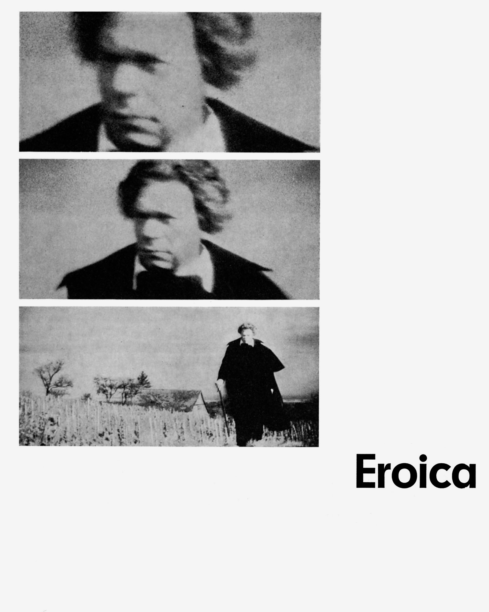 Eroica (Kleine Filmkunstreihe 25)Jahr: 1964Medium: BroschüreMaße: 18,5x23 cmTechnik: BuchdruckAuftraggeber: Neue Filmkunst Walter KirchnerOrt: GöttingenKeine Beschreibung
