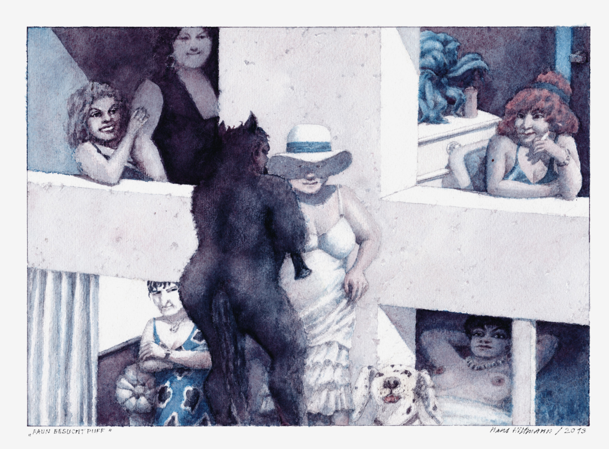 Faun besucht PuffJahr: 2013Medium: IllustrationMaße: 28,5x21 cmTechnik: AquarellzeichnungAuftraggeber: EigenauftragOrt: Frankfurt am MainKeine Beschreibung