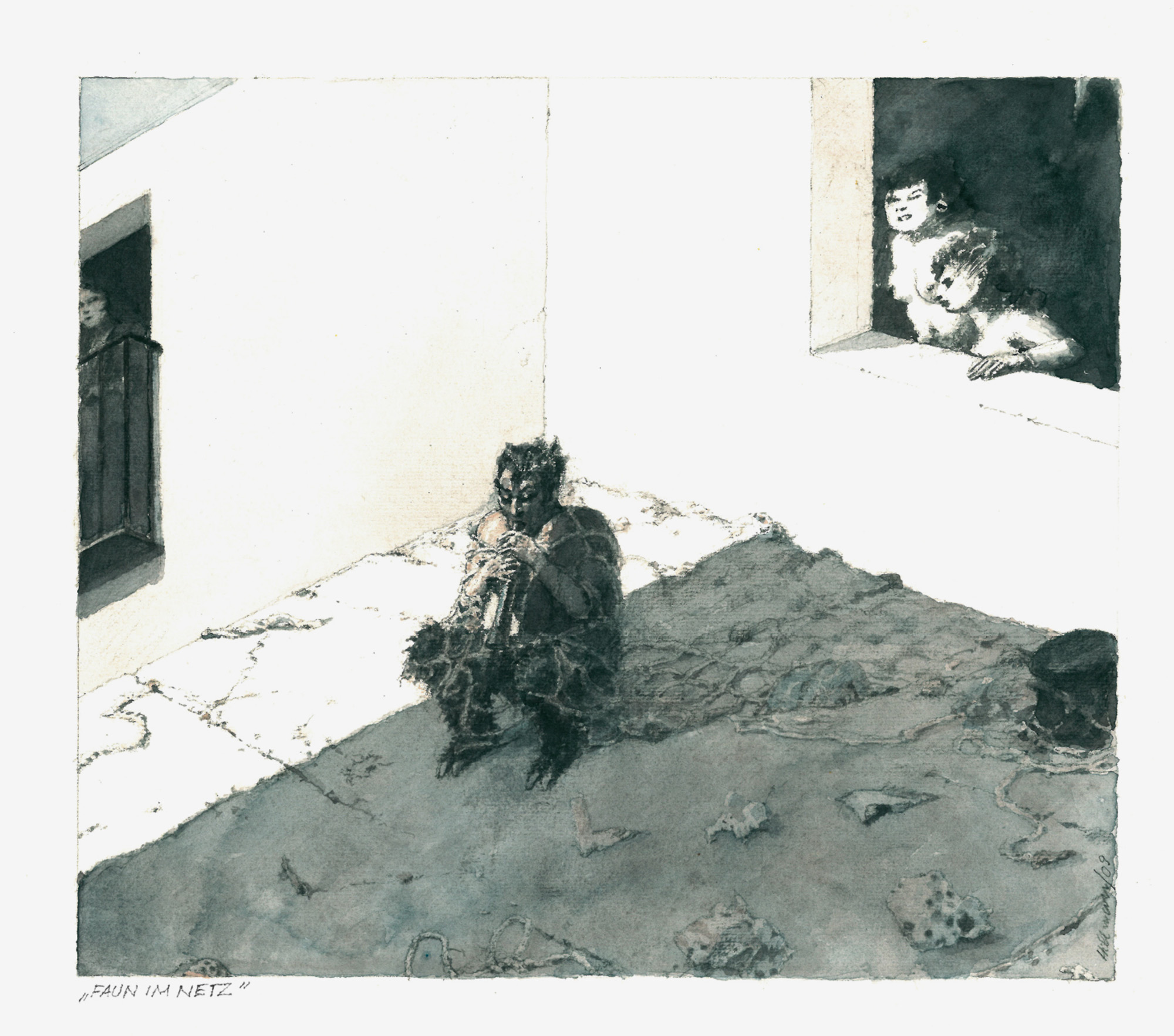 Faun im NetzJahr: 2009Medium: IllustrationMaße: 25x22 cmTechnik: AquarellzeichnungAuftraggeber: EigenauftragOrt: Frankfurt am MainKeine Beschreibung
