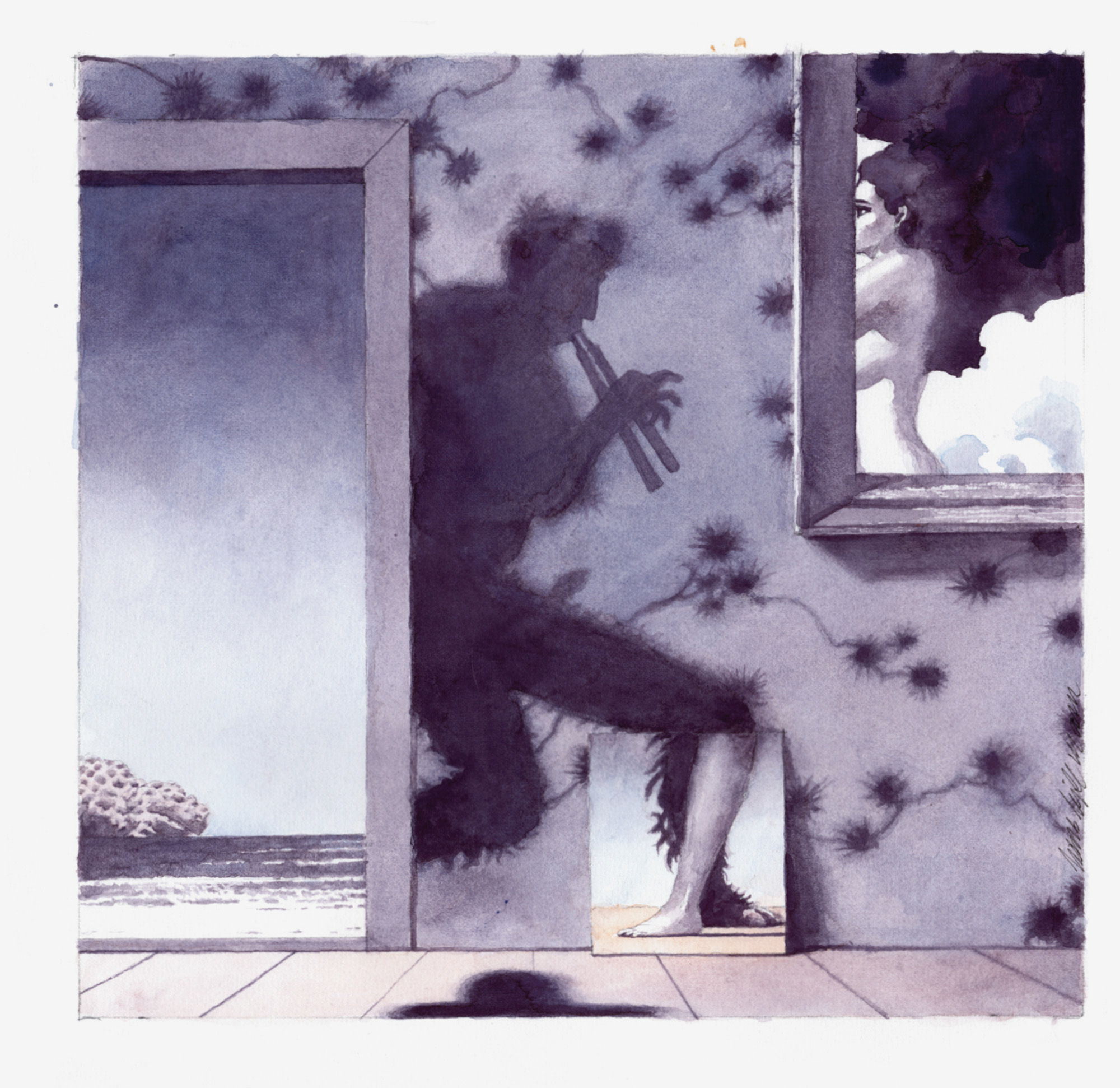Faun und Frau in ZimmerJahr: 2000Medium: IllustrationMaße: 22x21 cmTechnik: AquarellzeichnungAuftraggeber: EigenauftragOrt: Frankfurt am MainKeine Beschreibung