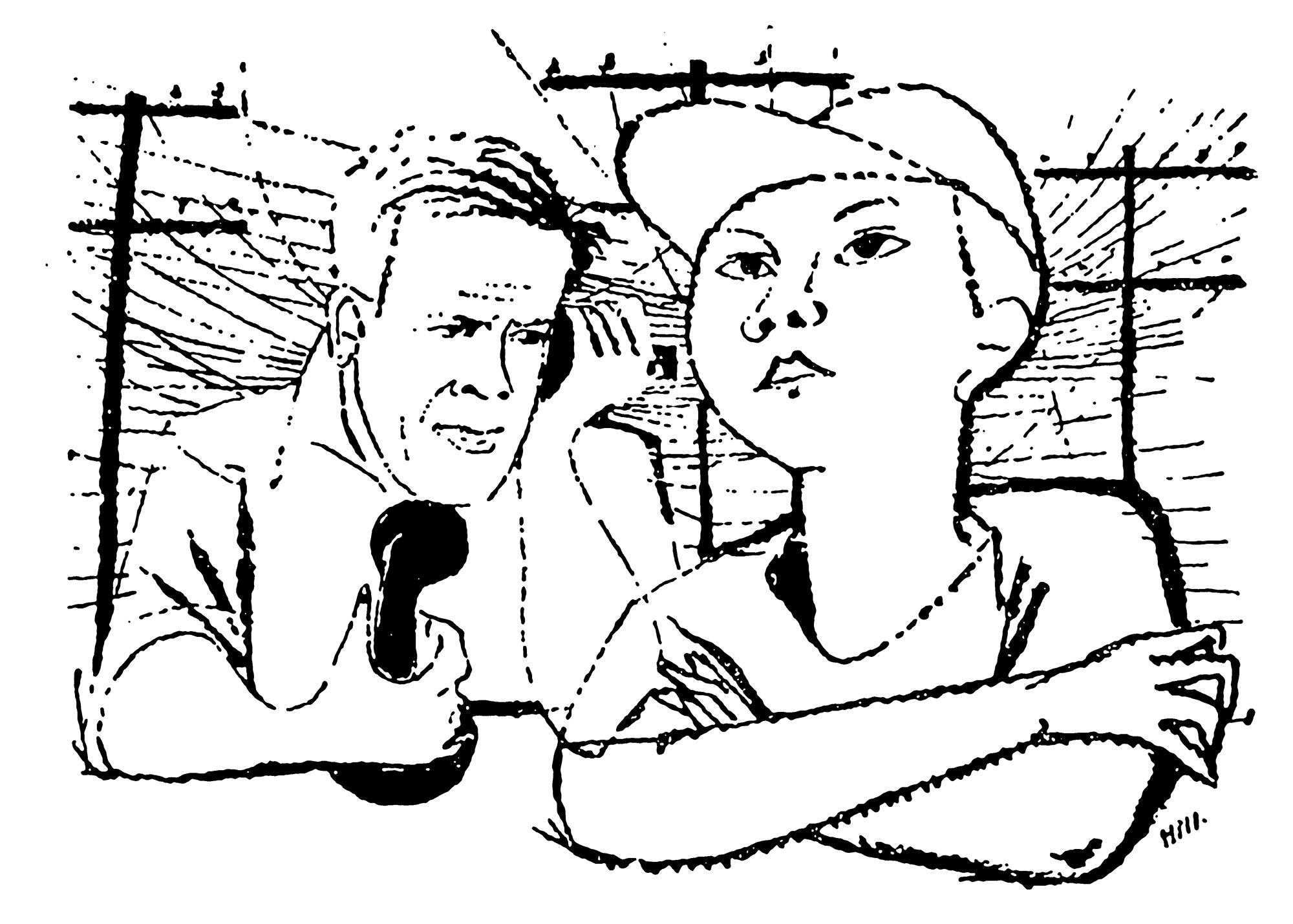 Fernruf aus Chicago (Skizze)Jahr: 1957Medium: IllustrationTechnik: TuschezeichnungAuftraggeber: Neue Filmkunst Walter KirchnerOrt: GöttingenKeine Beschreibung