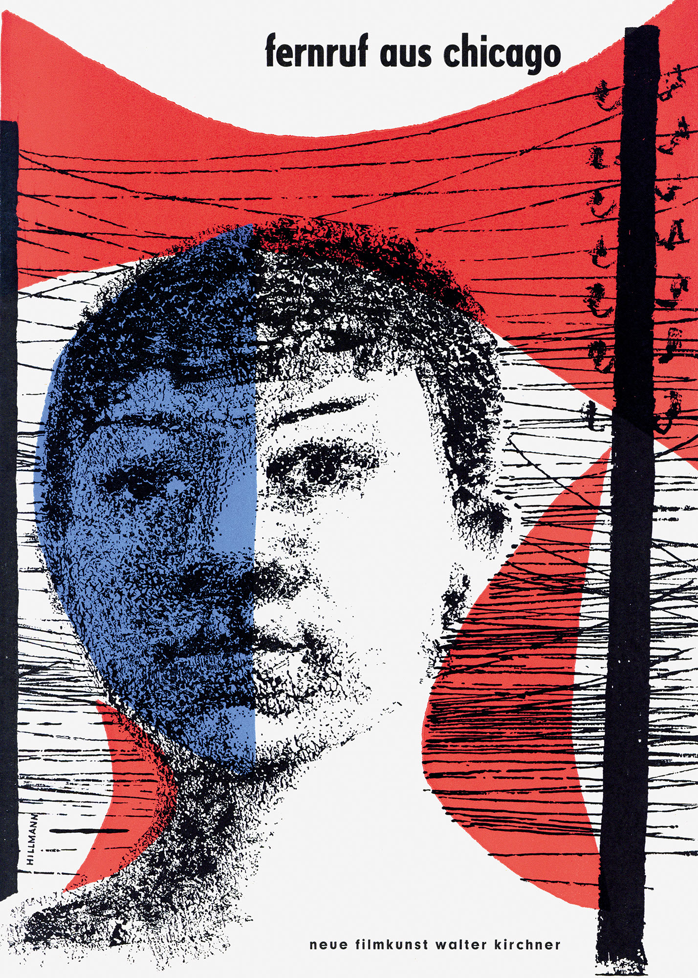 Fernruf aus Chicago (Titelseite)Jahr: 1957Medium: IllustrationMaße: 21x29,7 cmTechnik: BuchdruckAuftraggeber: Neue Filmkunst Walter KirchnerOrt: GöttingenKeine Beschreibung