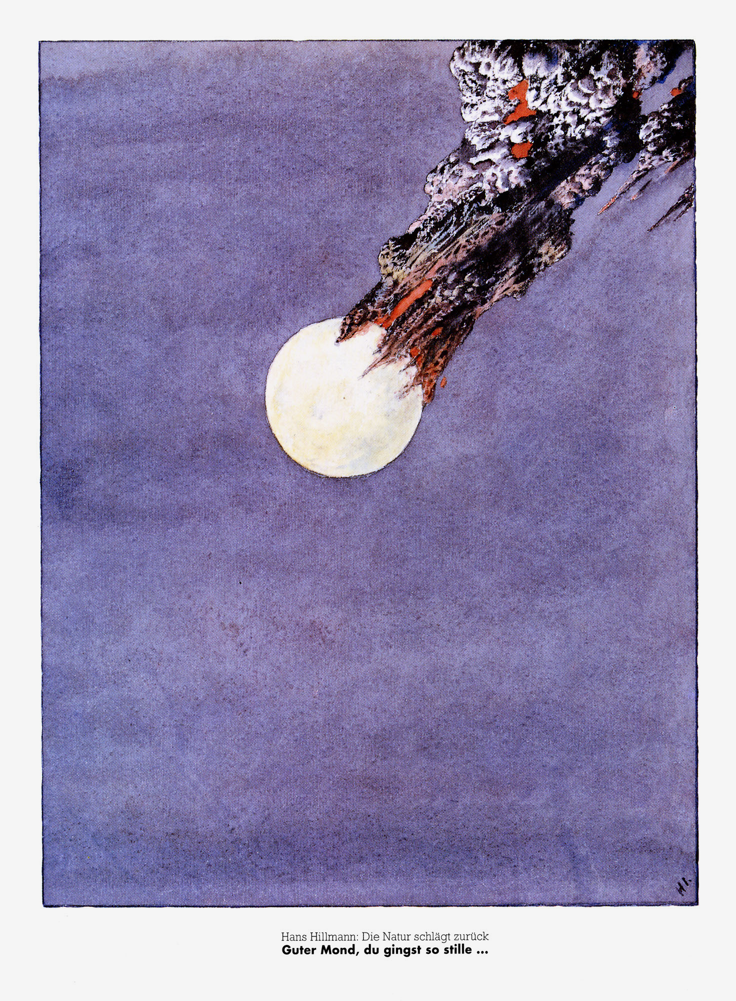 Guter Mond, du gingst so stilleJahr: 1996Medium: MagazinillustrationMaße: 20x28 cmTechnik: OffsetdruckAuftraggeber: Natur (Konradin Medien)Ort: Frankfurt am MainAus der Serie »Die Natur schlägt zurück«. Abgedruckt in »Natur«.