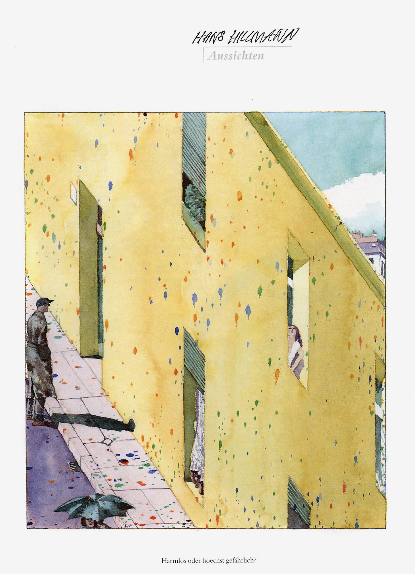 Harmlos oder hoechst gefährlichJahr: 1996Medium: MagazinillustrationMaße: 20x28 cmTechnik: OffsetdruckAuftraggeber: Natur (Konradin Medien)Ort: Frankfurt am MainAus der Serie »Aussichten«. Abgedruckt in »Natur«.