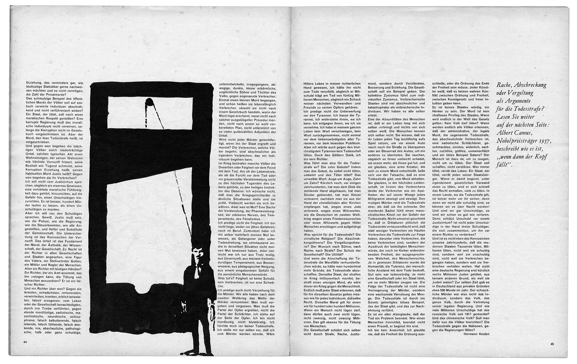 Haut ihm den Kopf abJahr: 1962Medium: MagazinillustrationMaße: 52x33,5 cmTechnik: TiefdruckAuftraggeber: TwenOrt: KölnAus twen Nr. 02-1962. Art Director: Willy Fleckhaus.