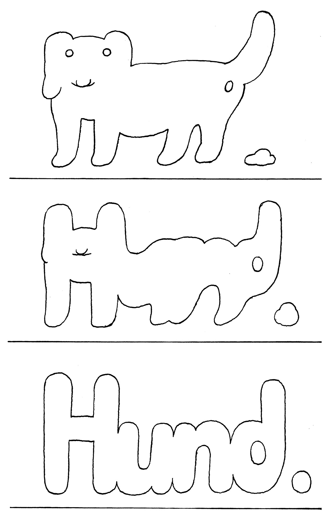 HundJahr: 1975Medium: BuchillustrationTechnik: TuschezeichnungAuftraggeber: EigenauftragOrt: Frankfurt am MainBildergeschichte für das Buch »ABC Geschichten«.