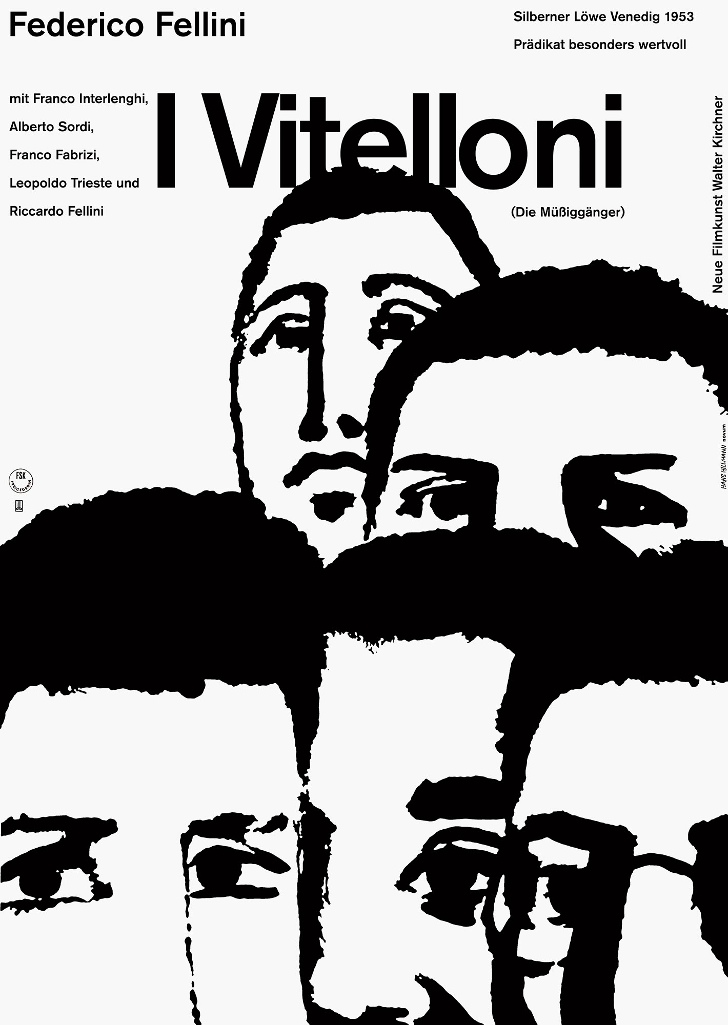 I VitelloniJahr: 1960Medium: PlakatMaße: 59,4x84,1 cm (DIN A1)Technik: OffsetdruckAuftraggeber: Neue Filmkunst Walter KirchnerOrt: GöttingenKeine Beschreibung