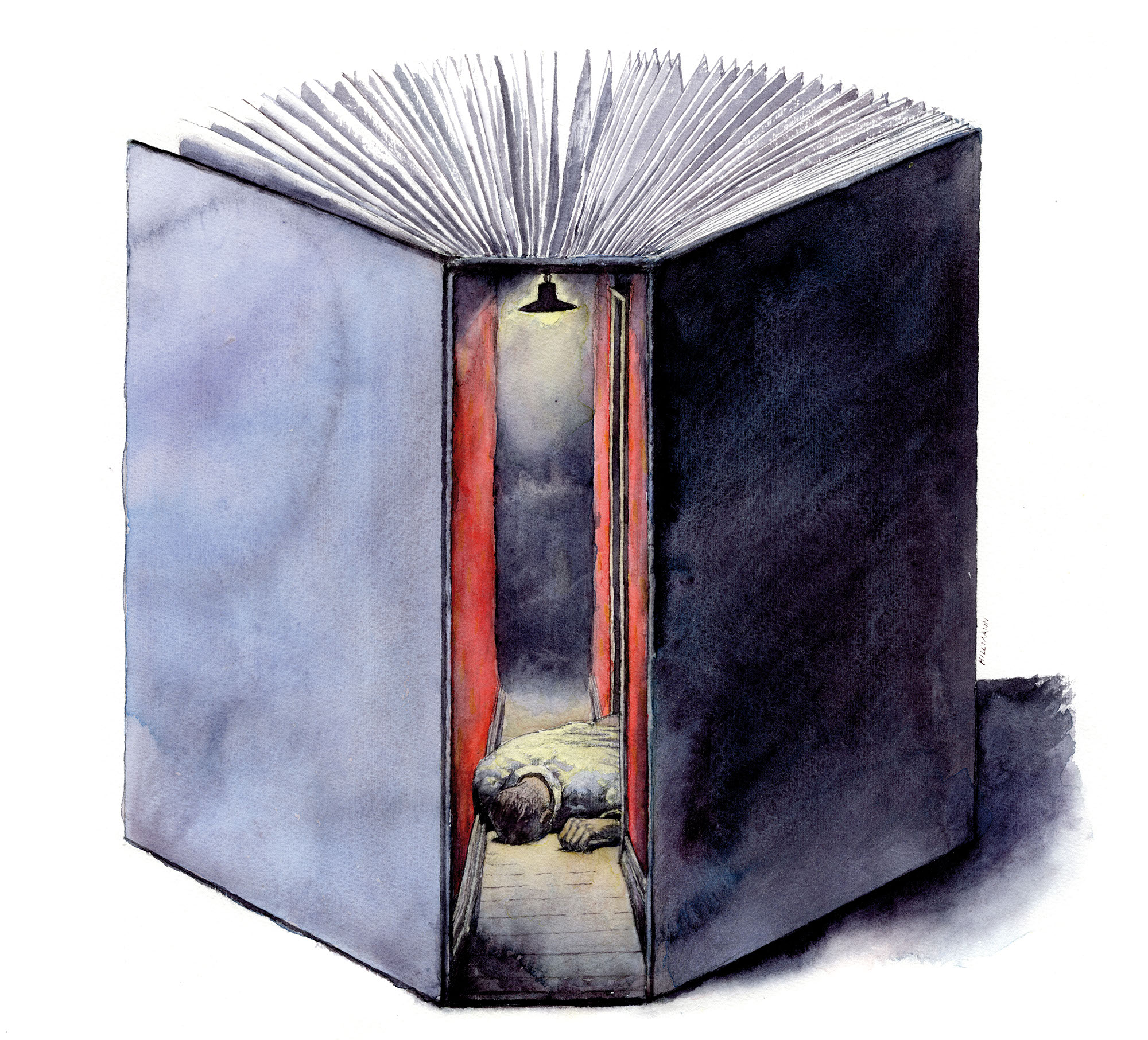 Ich bin das jüngste Gericht und will Rache (Entwurf)Jahr: 1984Medium: MagazinillustrationMaße: 28x30 cmTechnik: AquarellzeichnungAuftraggeber: Frankfurter Allgemeine MagazinOrt: Frankfurt am MainAbgedruckt im »FAZ Magazin«, 1990.