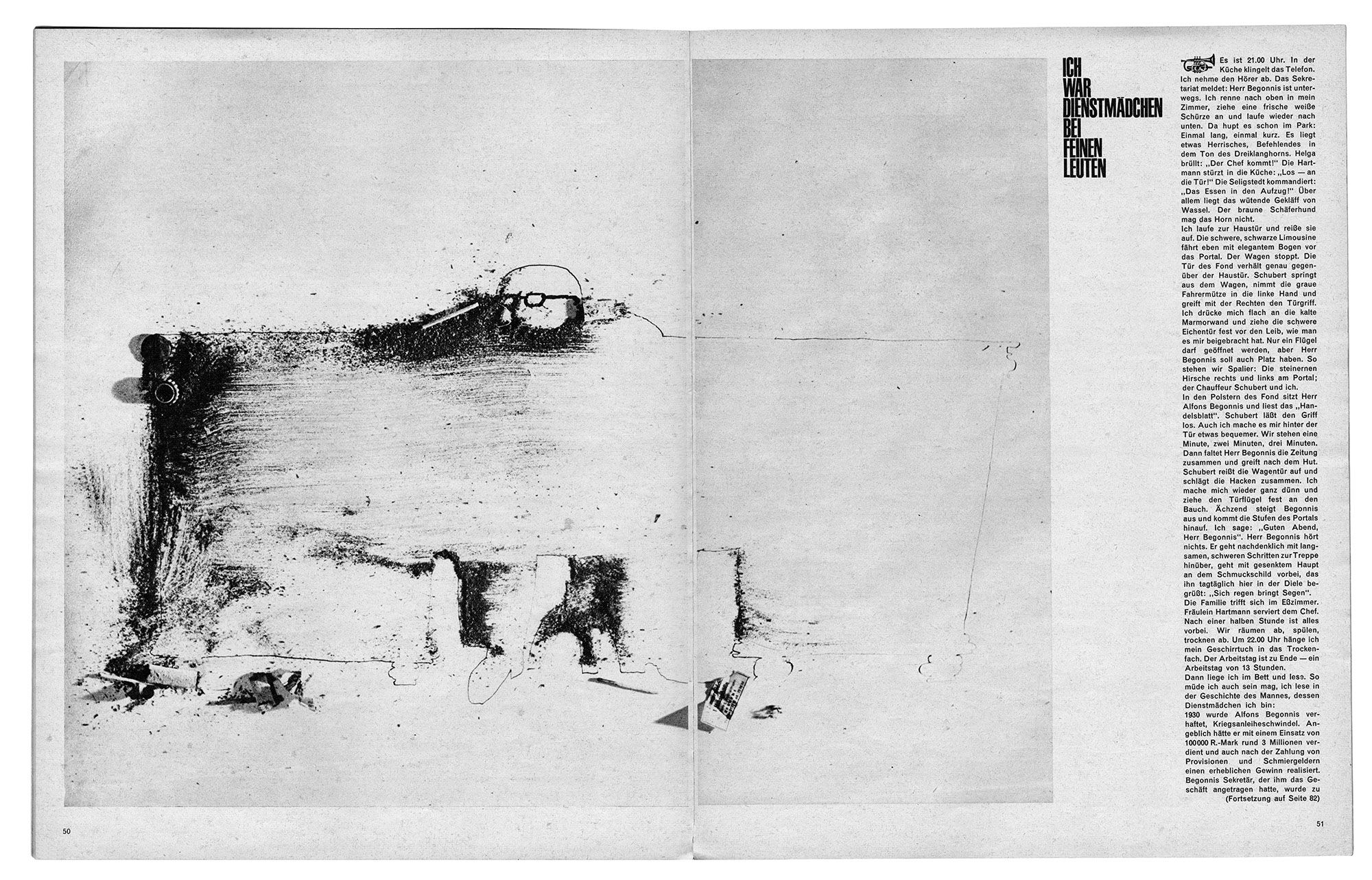 Ich war DienstmädchenJahr: 1963Medium: MagazinillustrationMaße: 52x33,5 cmTechnik: TiefdruckAuftraggeber: TwenOrt: KölnAus twen Nr. 02-1963. Art Director: Willy Fleckhaus.