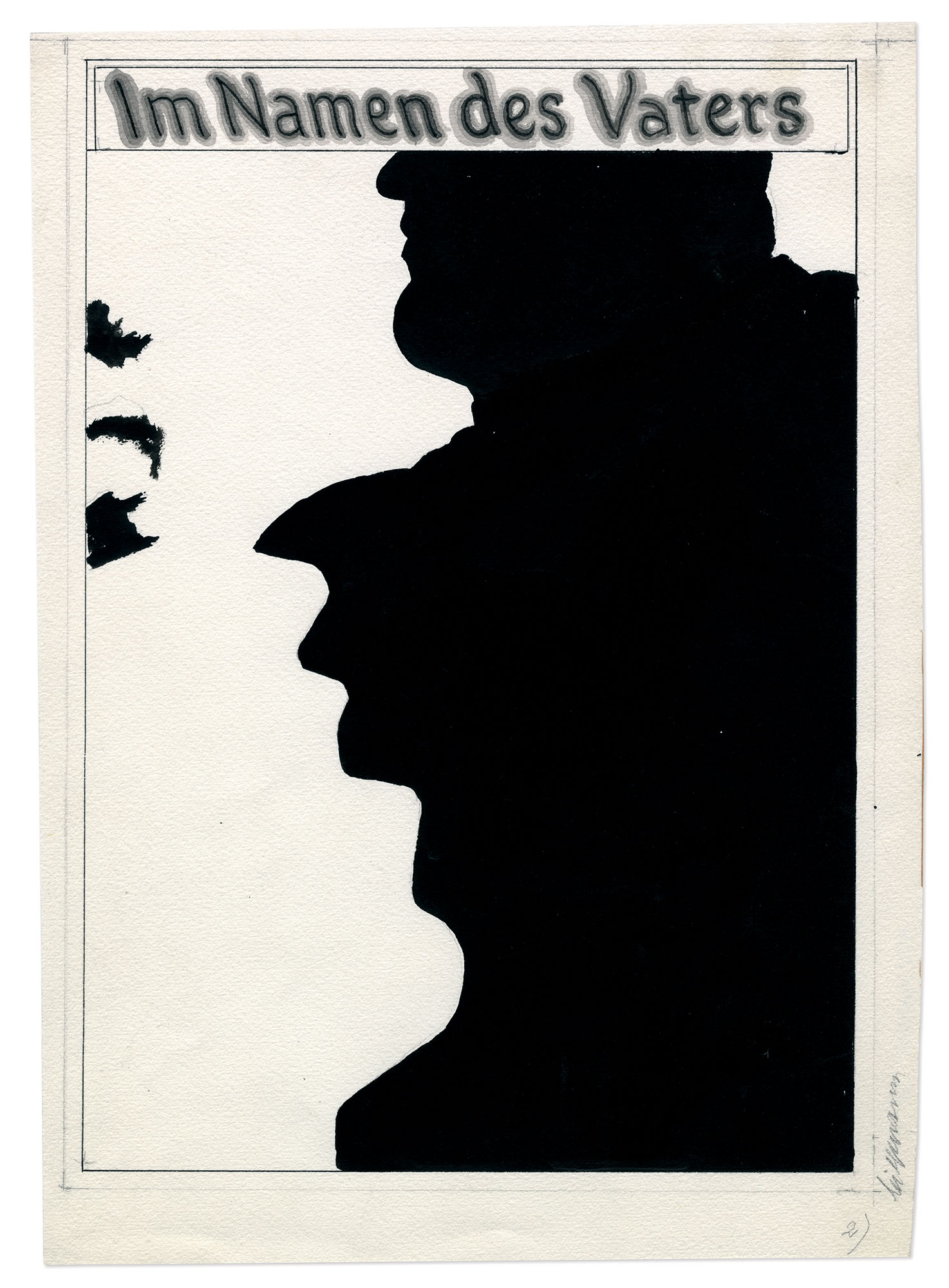 Im Namen des Vaters (Entwürfe)Jahr: 1974Medium: EntwurfMaße: 19,5x27,5 cmTechnik: AquarellzeichnungAuftraggeber: Neue Filmkunst Walter KirchnerOrt: GöttingenNicht realisierte Entwürfe zu „Im Namen des Vaters“.