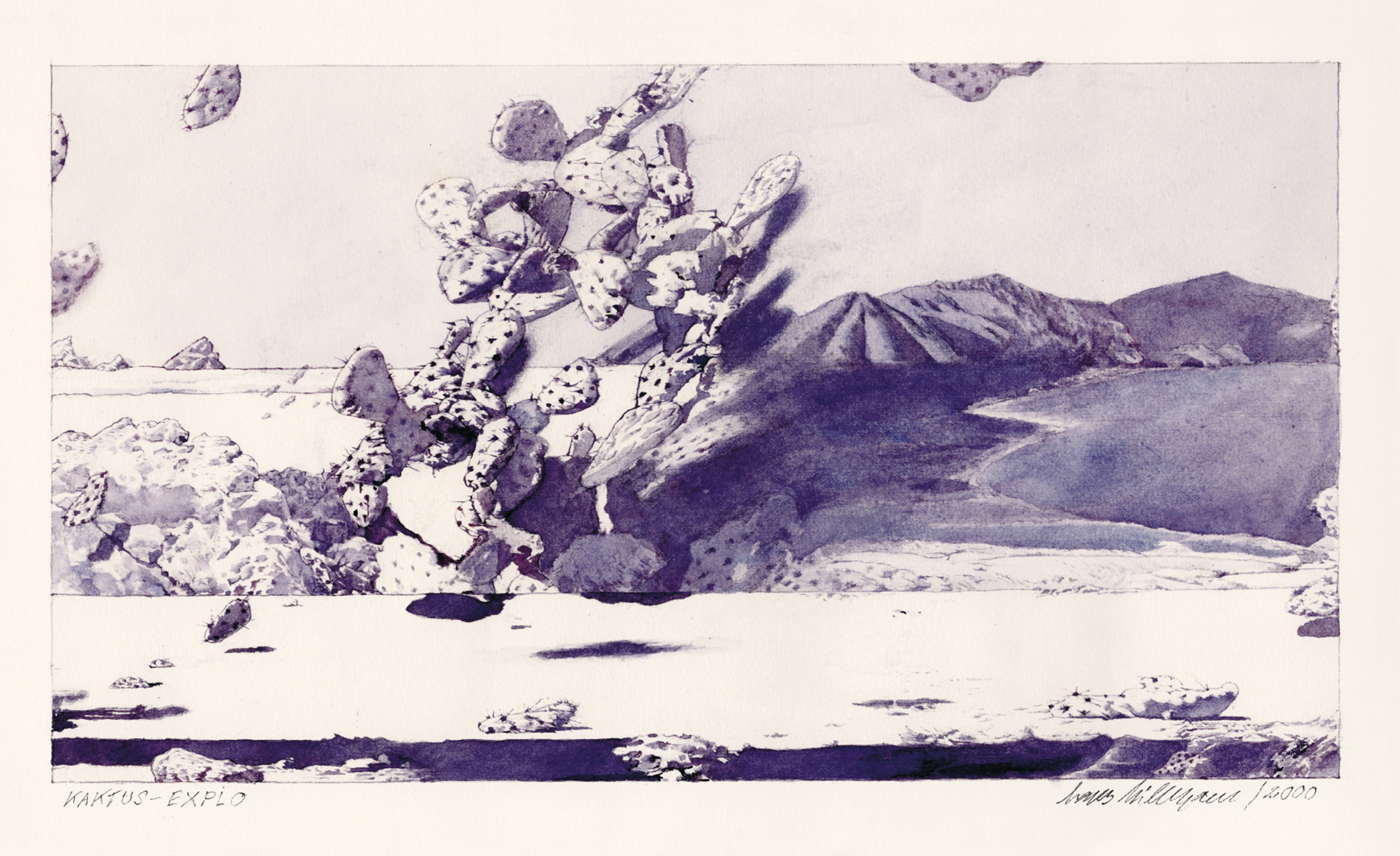 Kaktus-ExploJahr: 2000Medium: IllustrationMaße: 30x22 cmTechnik: AquarellzeichnungAuftraggeber: EigenauftragOrt: Frankfurt am MainKeine Beschreibung