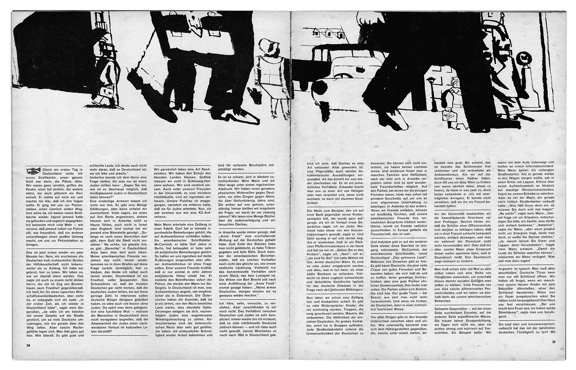 Kann man in Deutschland lebenJahr: 1961Medium: MagazinillustrationMaße: 52x33,5 cmTechnik: TiefdruckAuftraggeber: TwenOrt: KölnAus twen Nr. 07-1961. Art Director: Willy Fleckhaus