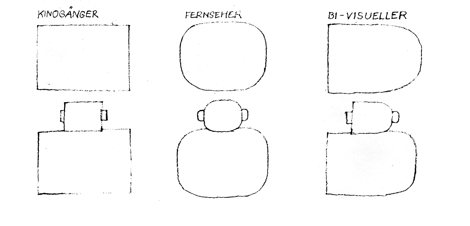 Kinogänger Fernseher Bi-VisuellerJahr: 1963Medium: MagazinillustrationMaße: 21x10 cmTechnik: OffsetdruckAuftraggeber: Film – Zeitschrift für Film und FernsehenOrt: Frankfurt am MainAbgedruckt in Film – Zeitschrift für Film und Fernsehen, Nr. 4.