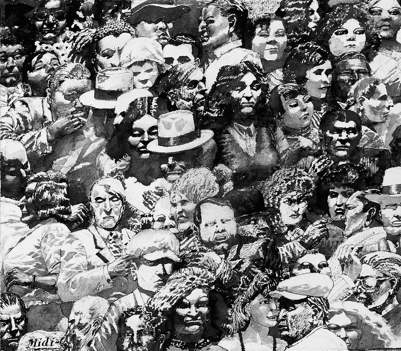 Köpfe im QuadratJahr: 2002Medium: IllustrationMaße: 30x22 cmTechnik: AquarellzeichnungAuftraggeber: EigenauftragOrt: Frankfurt am MainKeine Beschreibung