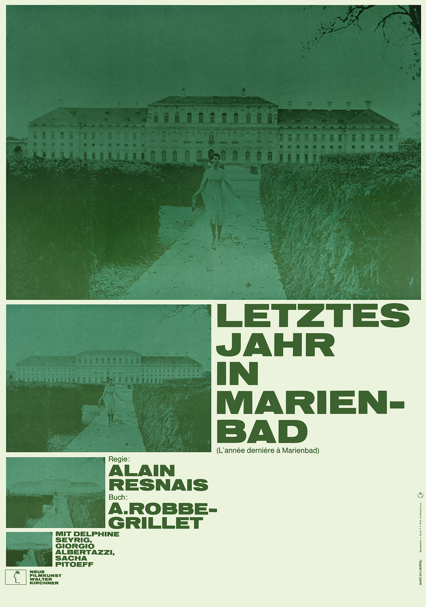 Letztes Jahr in MarienbadJahr: 1961Medium: PlakatMaße: 59,4x84,1 cm (DIN A1)Technik: OffsetdruckAuftraggeber: Neue Filmkunst Walter KirchnerOrt: GöttingenKeine Beschreibung