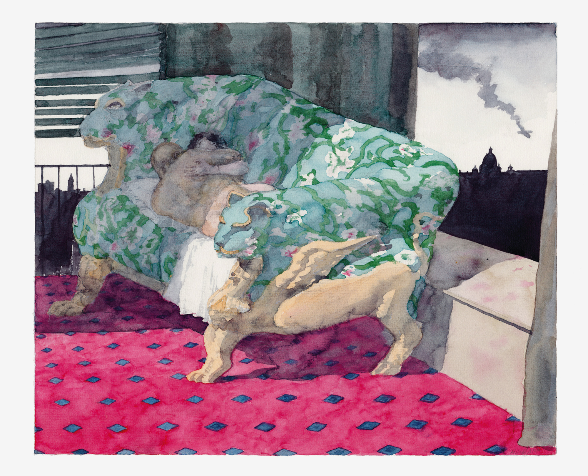 Liebesgeschichten – Claretta Petacci & Benito MussoliniJahr: 1990Medium: IllustrationMaße: 29x21 cmTechnik: AquarellzeichnungAuftraggeber: Frankfurter Allgemeine MagazinOrt: Frankfurt am MainAus der Serie »Liebesgeschichten«. Abgedruckt im »FAZ Magazin«.