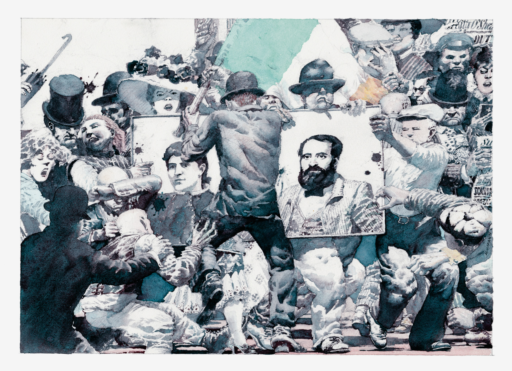 Liebesgeschichten – Katy O‘Shea & Charles ParnellJahr: 1990Medium: IllustrationMaße: 25x21 cmTechnik: AquarellzeichnungAuftraggeber: Frankfurter Allgemeine MagazinOrt: Frankfurt am MainAus der Serie »Liebesgeschichten«. Abgedruckt im »FAZ Magazin«.