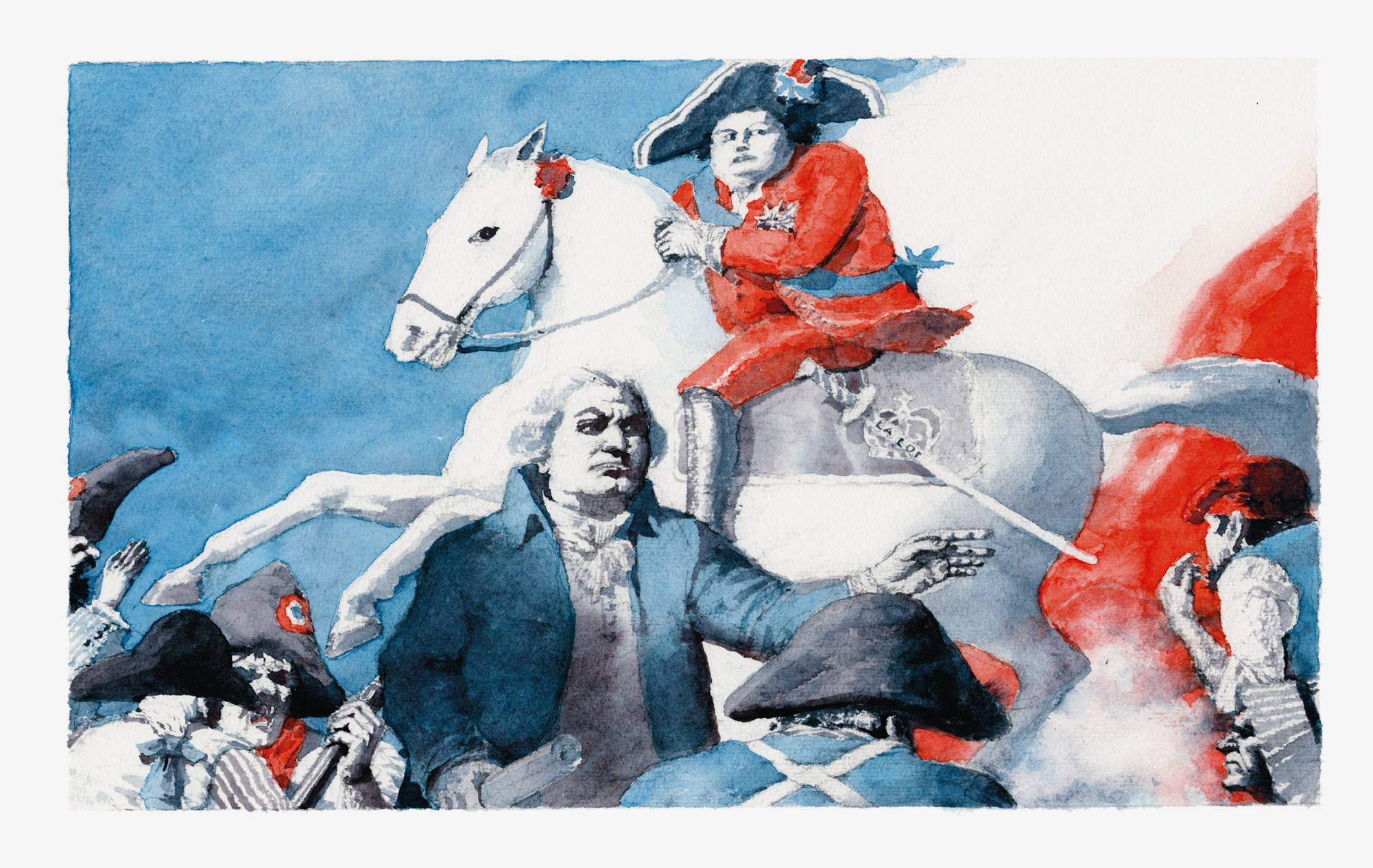 Liebesgeschichten – Marie Thérèse de Monnier & MirabeauJahr: 1990Medium: IllustrationMaße: 27x19,5 cmTechnik: AquarellzeichnungAuftraggeber: Frankfurter Allgemeine MagazinOrt: Frankfurt am MainAus der Serie »Liebesgeschichten«. Abgedruckt im »FAZ Magazin«.