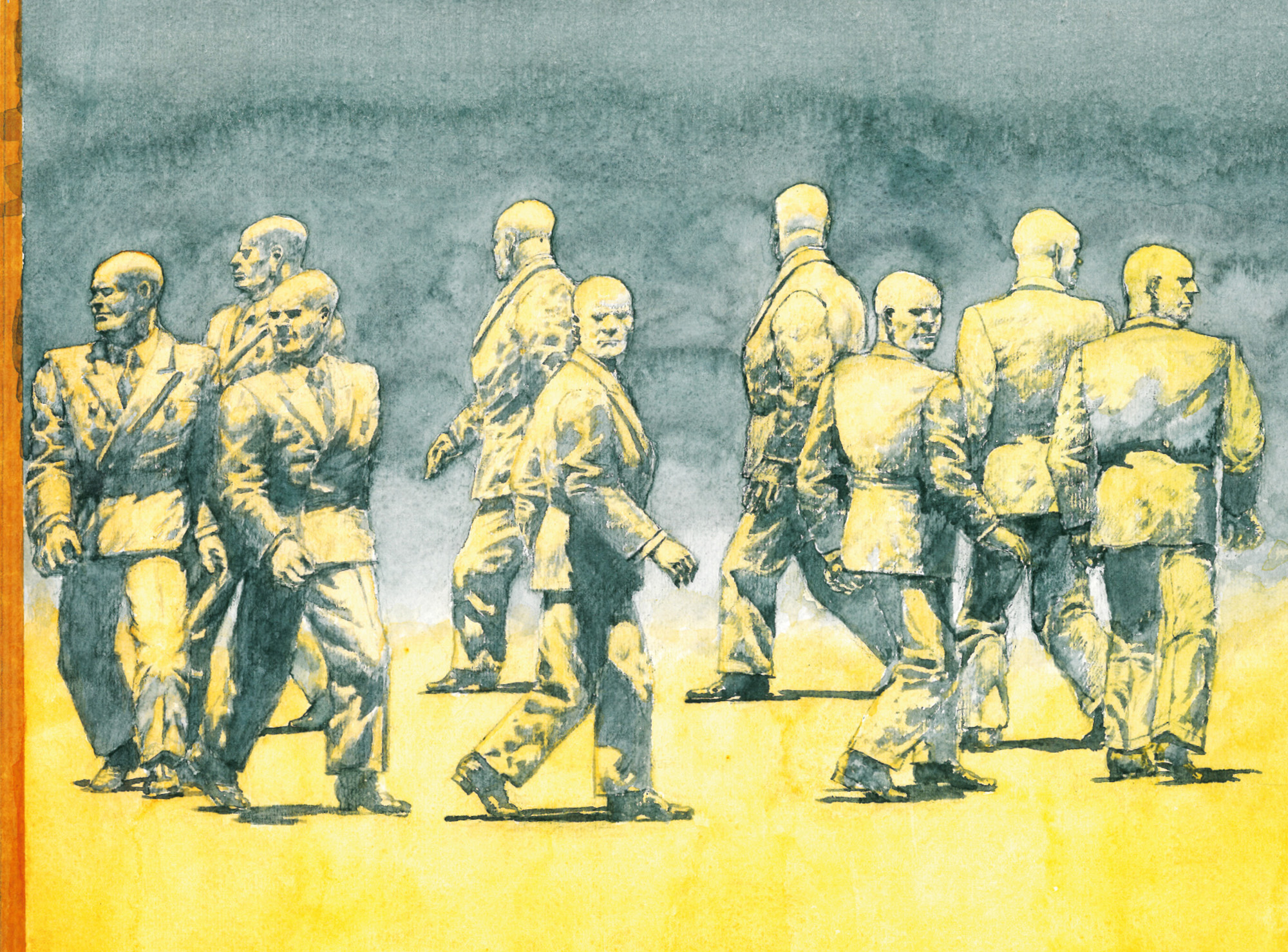 Man geht im KreisJahr: 2000Medium: IllustrationMaße: 30x22 cmTechnik: AquarellzeichnungAuftraggeber: EigenauftragOrt: Frankfurt am MainKeine Beschreibung