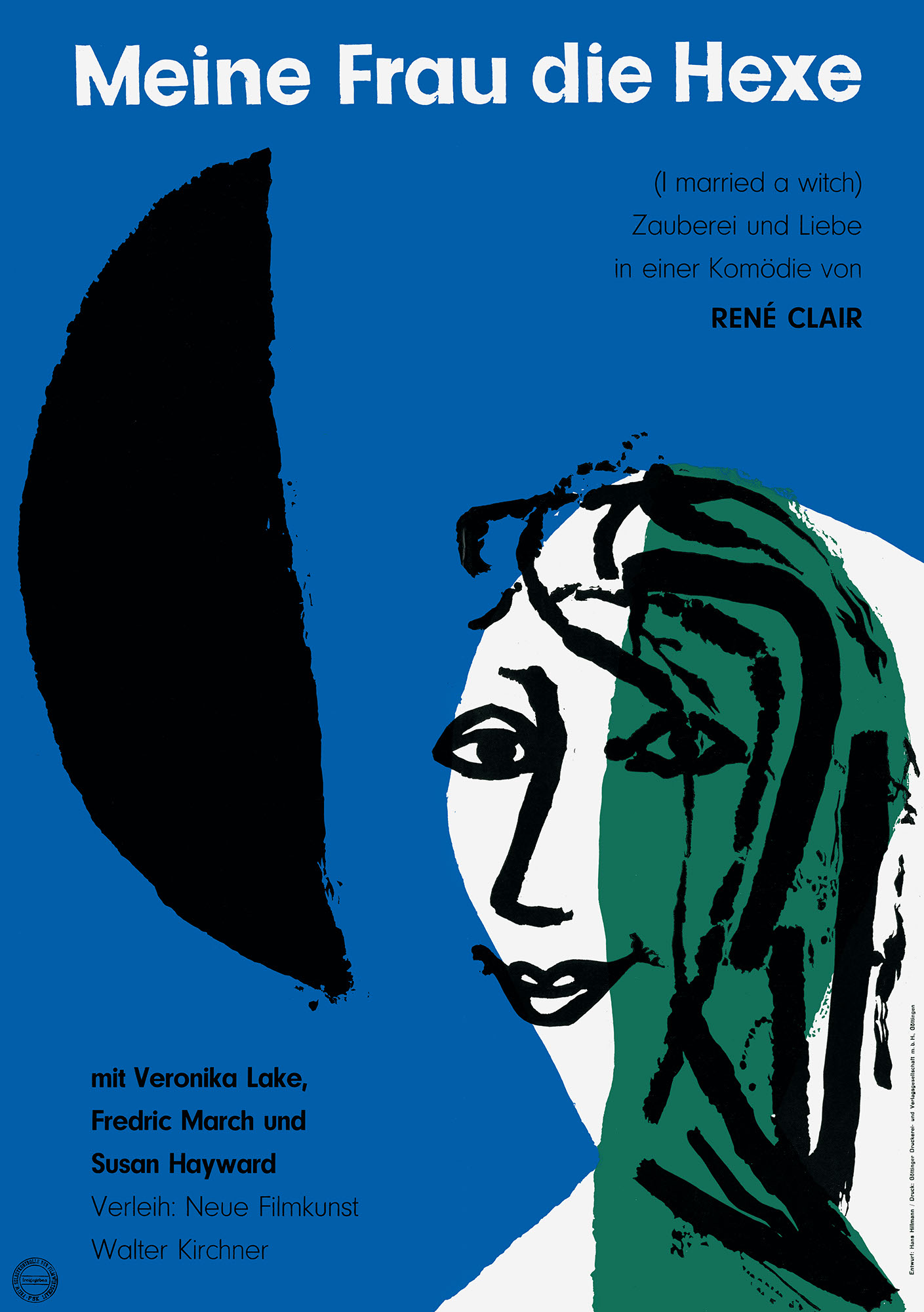 Meine Frau, die HexeJahr: 1958Medium: PlakatMaße: 59,4x84,1 cm (DIN A1)Technik: OffsetdruckAuftraggeber: Neue Filmkunst Walter KirchnerOrt: GöttingenKeine Beschreibung