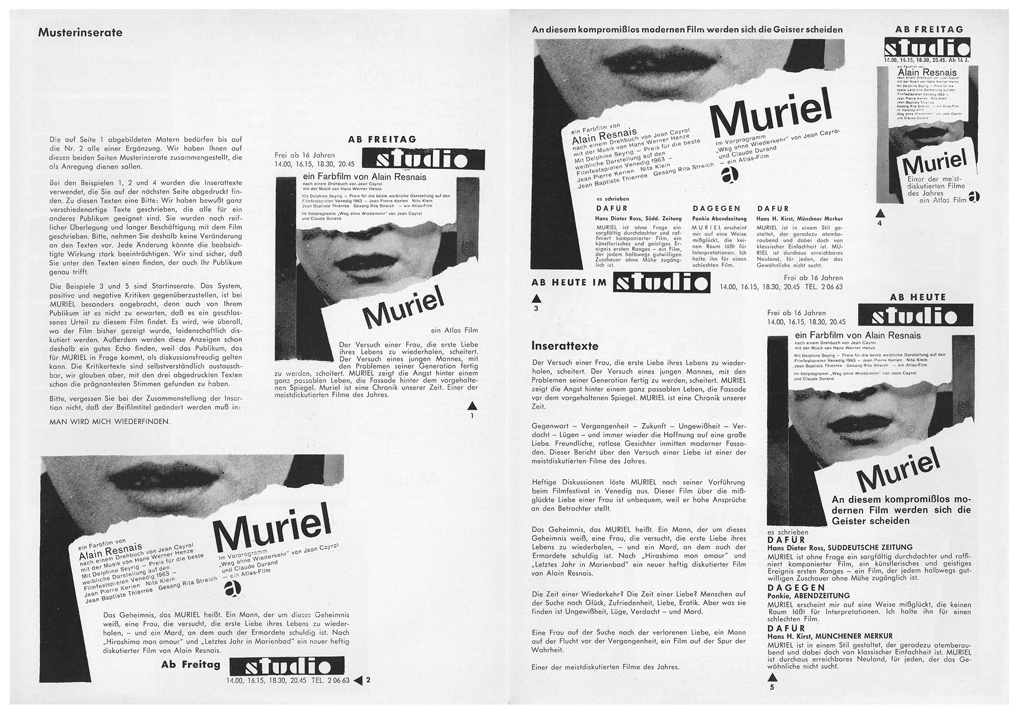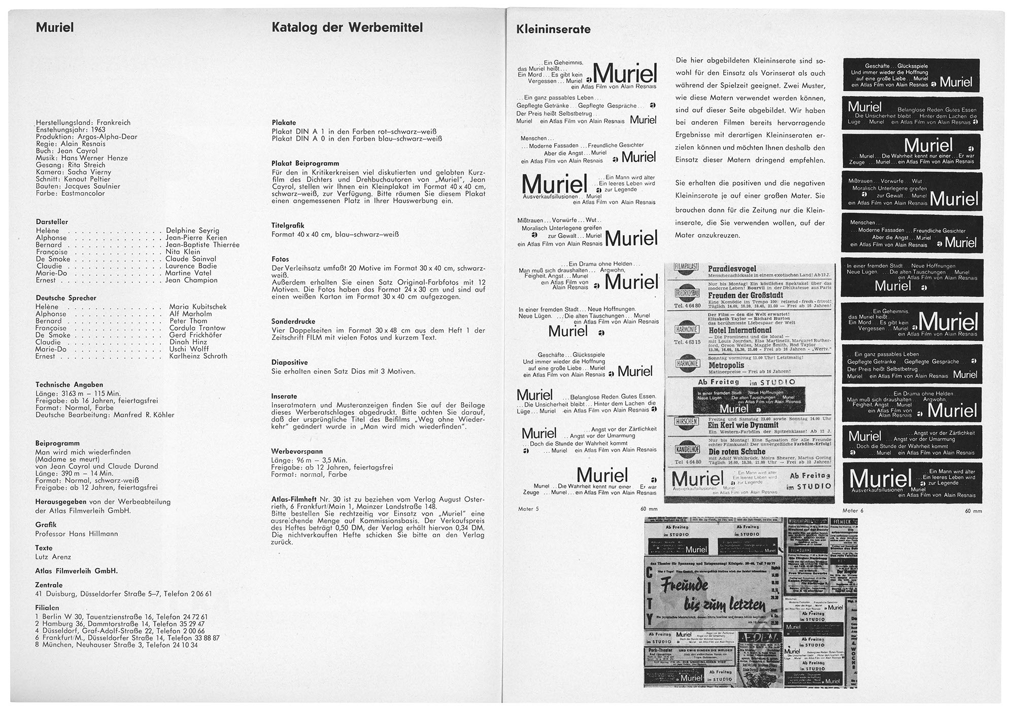 Muriel (Werberatschlag)Jahr: 1963Medium: BroschüreMaße: 30x20,5 cmTechnik: BuchdruckAuftraggeber: Atlas FilmOrt: DuisburgKeine Beschreibung