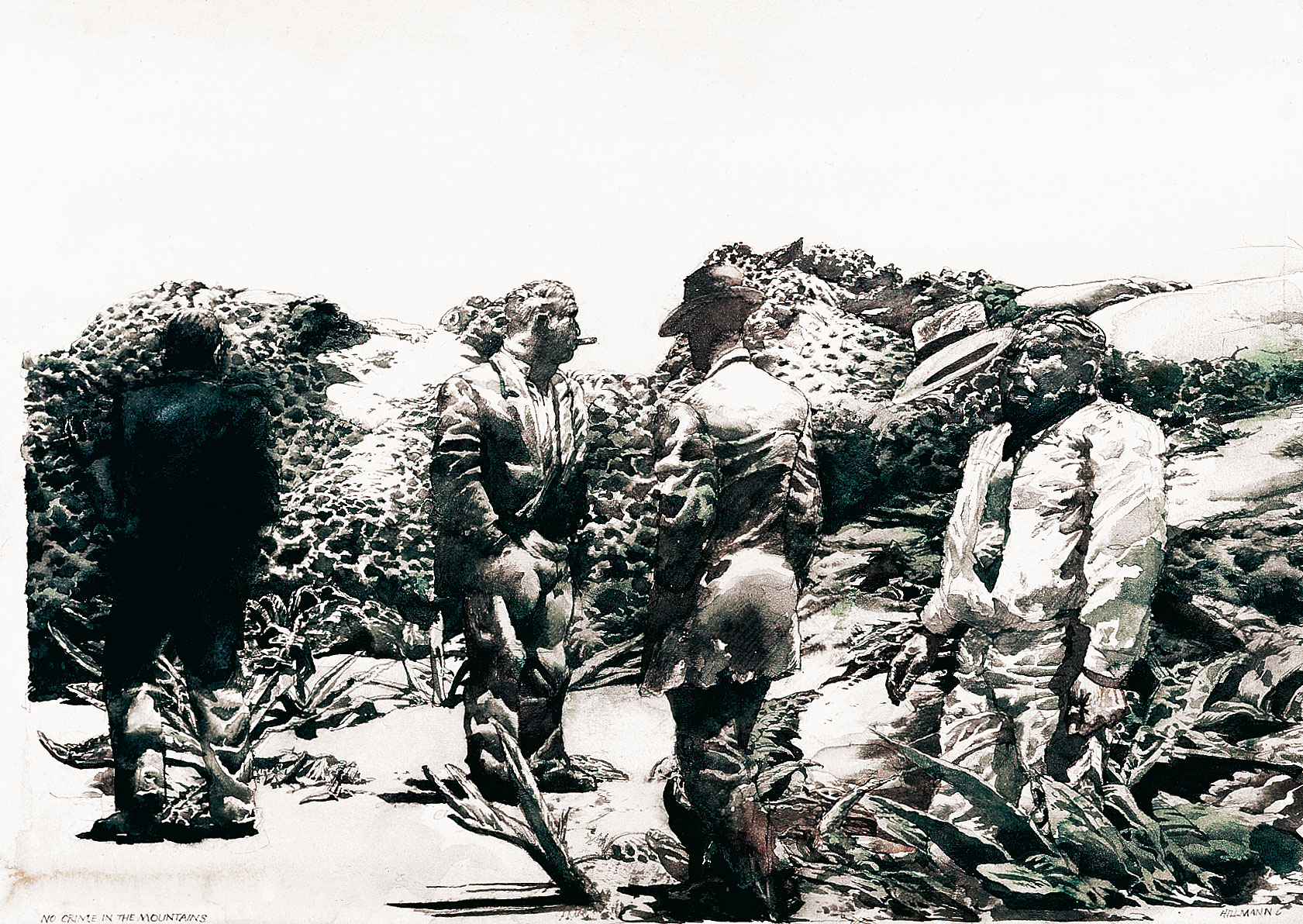 No Crime in the MountainsJahr: 1986Medium: IllustrationTechnik: AquarellzeichnungAuftraggeber: EigenauftragOrt: Frankfurt am MainKeine Beschreibung