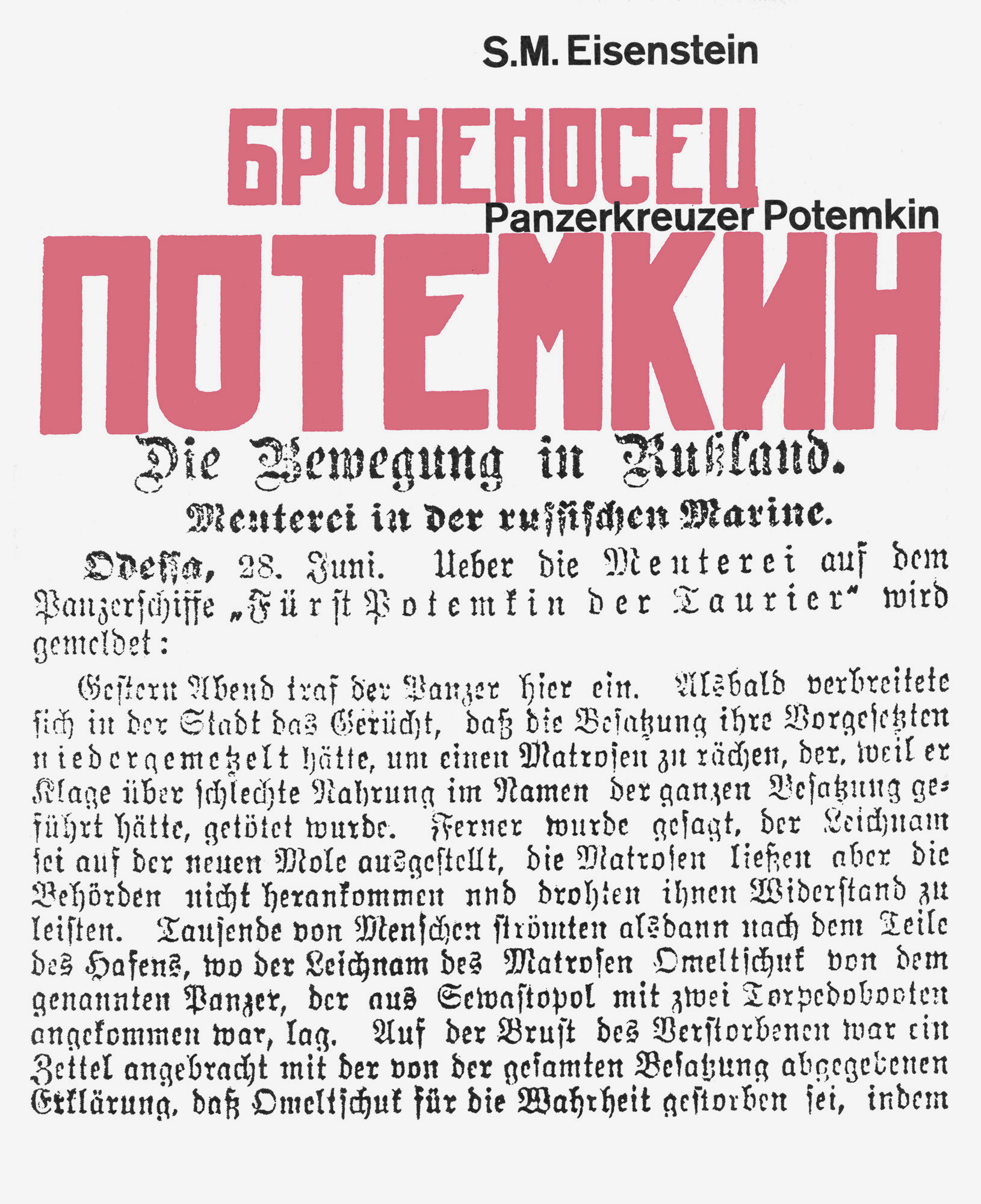 Panzerkreuzer Potemkin (Kleine Filmkunstreihe 58)Jahr: 1966Medium: BroschüreMaße: 18,5x23 cmTechnik: OffsetdruckAuftraggeber: Neue Filmkunst Walter KirchnerOrt: GöttingenKeine Beschreibung