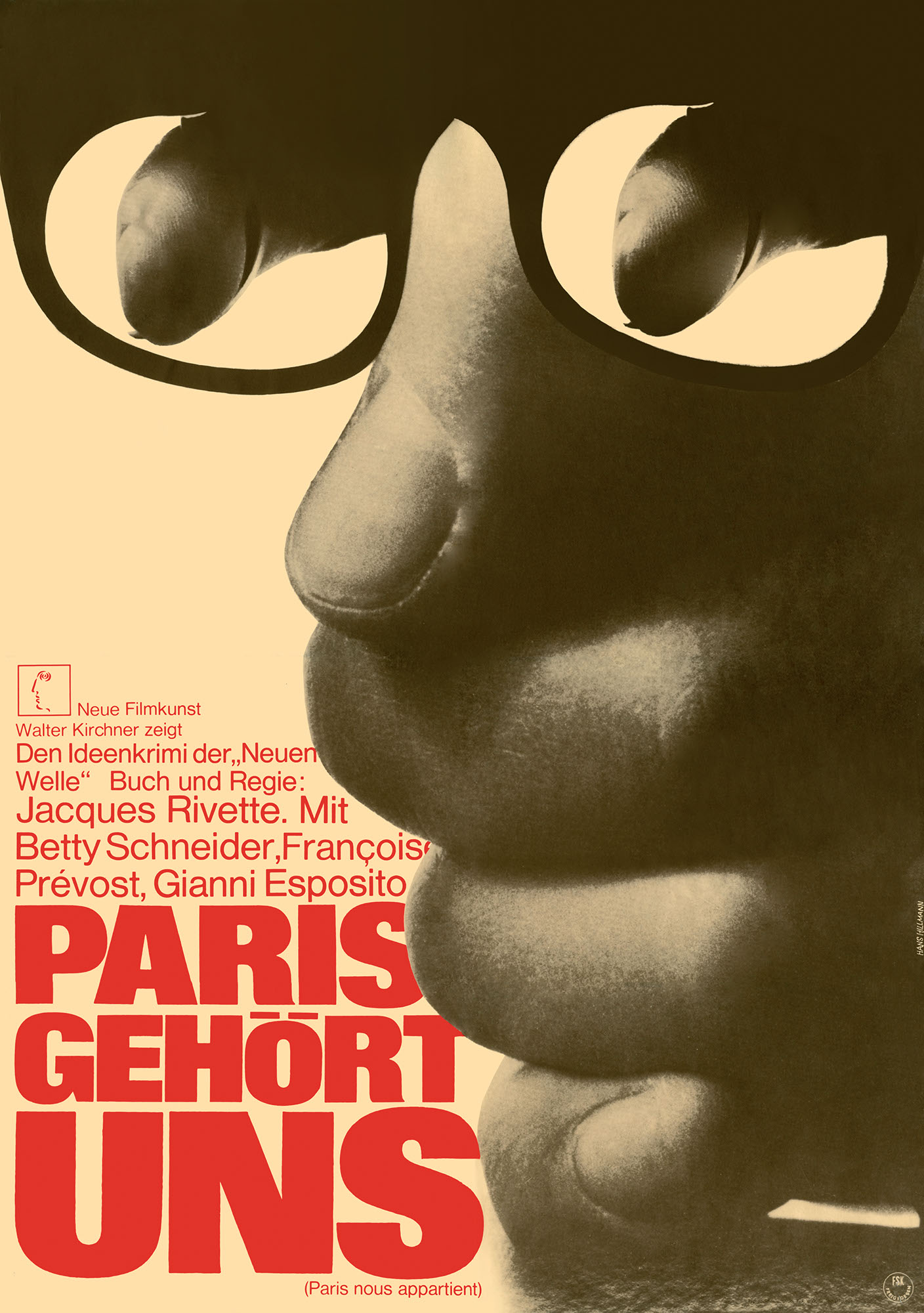 Paris gehört unsJahr: 1968Medium: PlakatMaße: 59,4x84,1 cm (DIN A1)Technik: OffsetdruckAuftraggeber: Neue Filmkunst Walter KirchnerOrt: GöttingenKeine Beschreibung