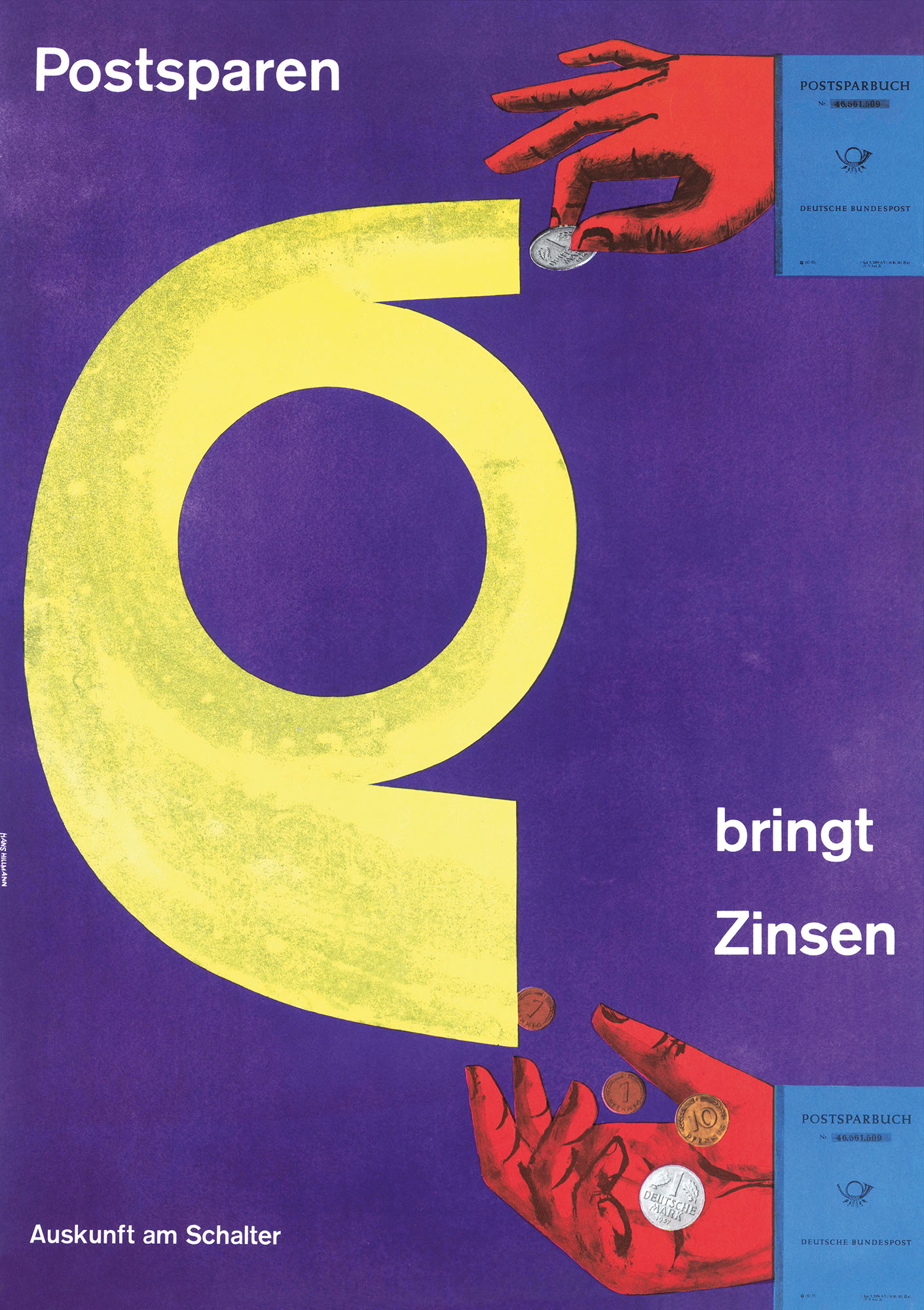PostsparenJahr: 1955Medium: PlakatMaße: 42x59,4 cm (DIN A2)Technik: OffsetdruckAuftraggeber: Deutsches BundespostOrt: BonnKeine Beschreibung
