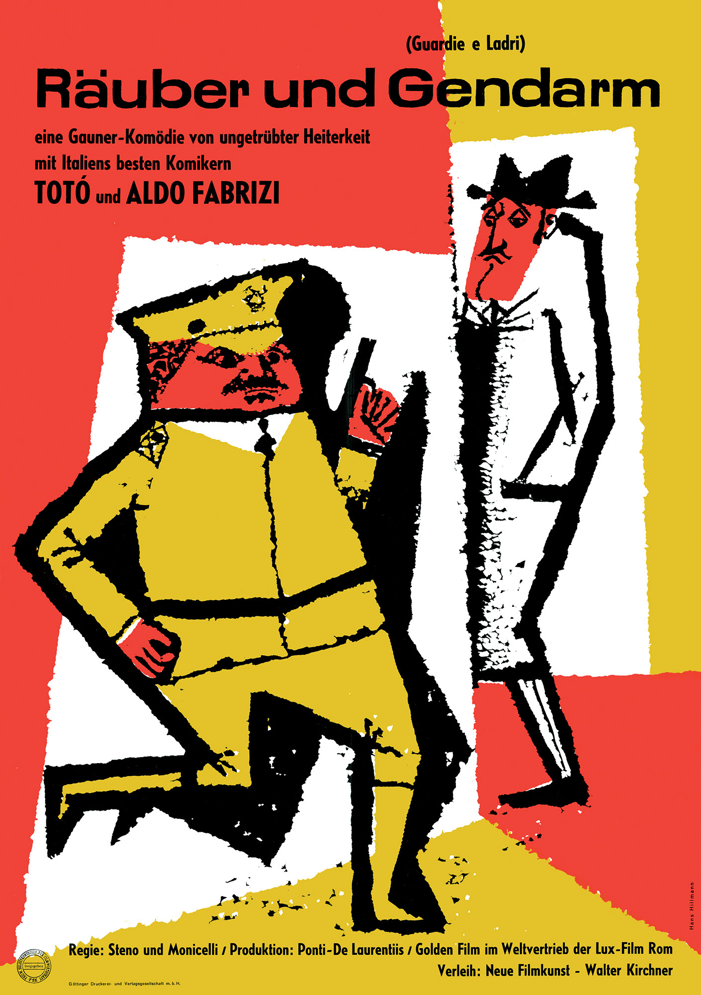 Räuber und GendarmJahr: 1957Medium: PlakatMaße: 59,4x84,1 cm (DIN A1)Technik: BuchdruckAuftraggeber: Neue Filmkunst Walter KirchnerOrt: GöttingenKeine Beschreibung