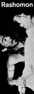 In »Rashomon«, der vierfachen Erzählung der gleichen Begebenheit durch die vier daran Beteiligten, wird das Hochformat waagerecht viergeteilt. In jedem der Felder sind Ausschnitte und Gesten von menschlichen Figuren dargestellt. Sie sind so übereinander montiert, daß sich der Eindruck von nur einer bewegten Figur ergibt, die in sich dem komplizierten Sachverhalt des Films entspricht. (Hans Hillmann)