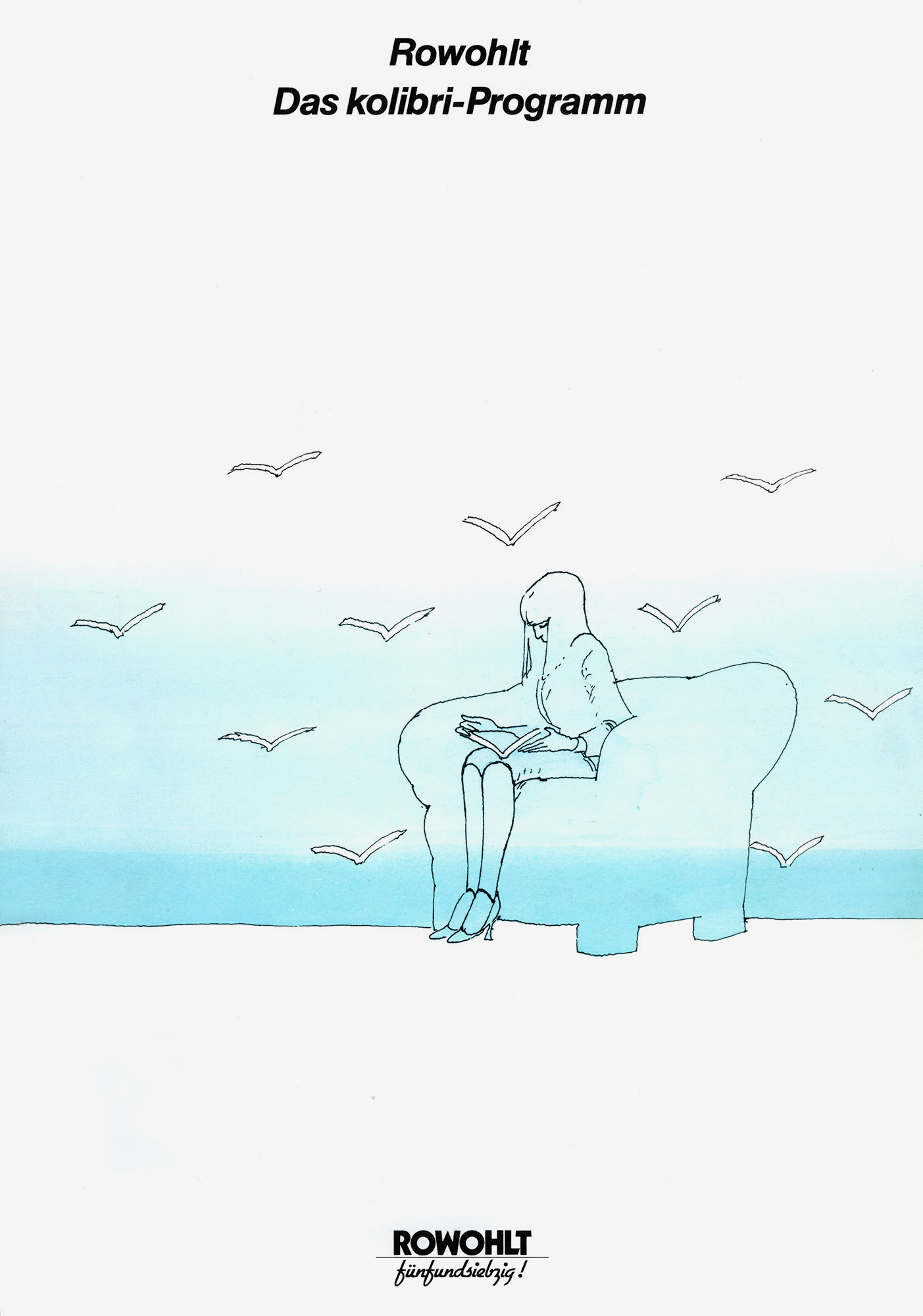 Rowohlt – Das kolibri-ProgrammJahr: 1983Medium: BroschürenumschlagMaße: 21x29,7 cmTechnik: OffsetdruckAuftraggeber: Rowohlt VerlagOrt: ReinbekKeine Beschreibung