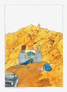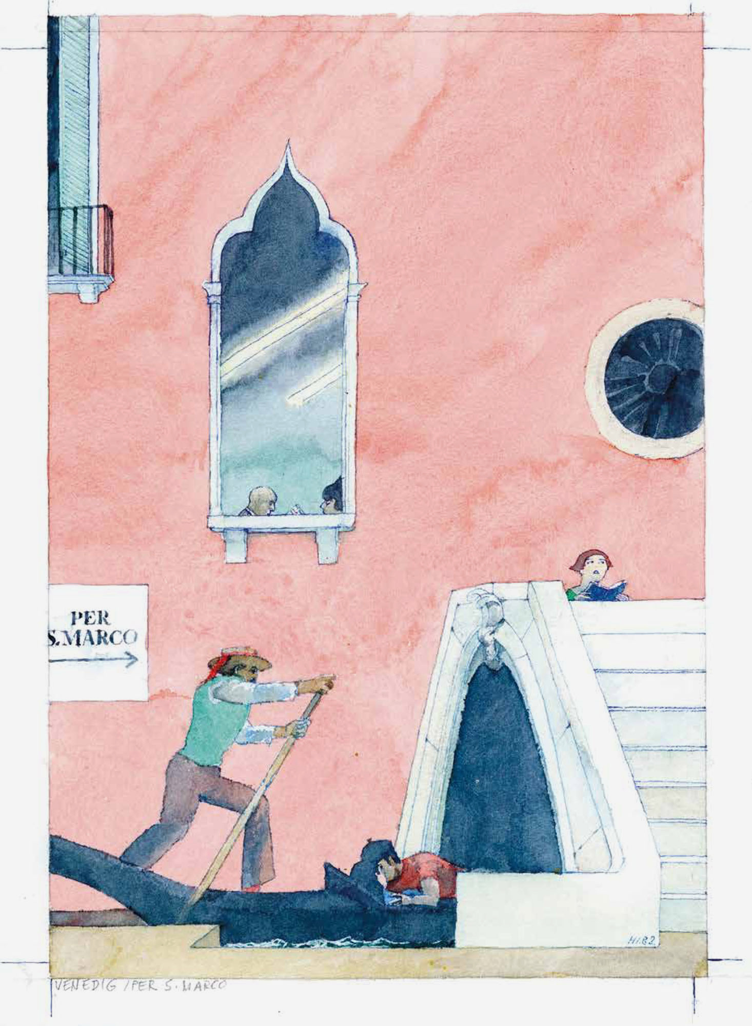 Rowohlt – Verlagsvorschau 94 (Entwurf)Jahr: 1994Medium: IllustrationMaße: 14,5x20,5 cmTechnik: AquarellzeichnungAuftraggeber: Rowohlt VerlagOrt: Frankfurt am MainKeine Beschreibung