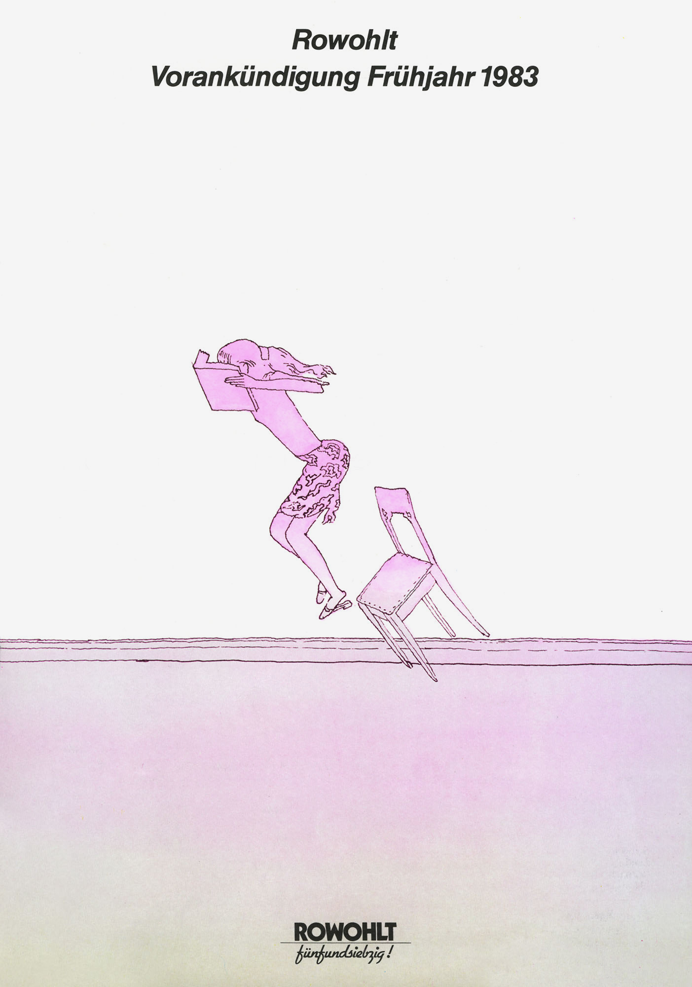 Rowohlt – Vorankündigung (Frühjahr 1983)Jahr: 1982Medium: BroschürenumschlagMaße: 21x29,7 cmTechnik: OffsetdruckAuftraggeber: Rowohlt VerlagOrt: ReinbekKeine Beschreibung